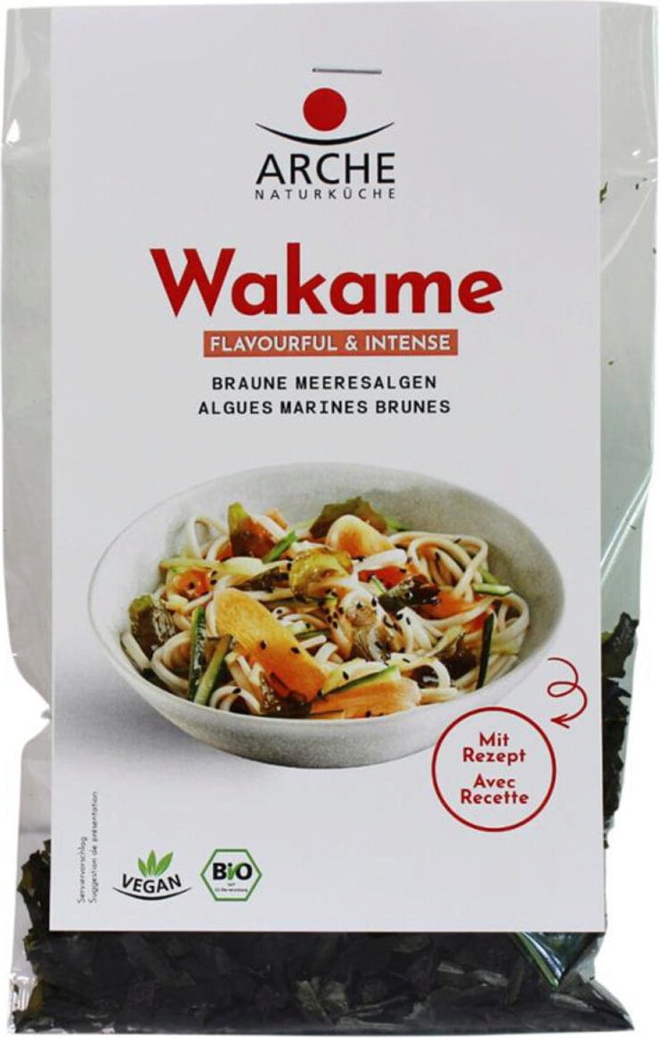 Arche Bio Wakame sind getrocknete Meeresalgen, mit denen du besonders Suppen, Salaten und Gemüsegerichten ein angenehm würziges Aroma verleihen kannst. Für die leichtere Verwendung, sind die Wakame bereits in Streifen geschnitten.