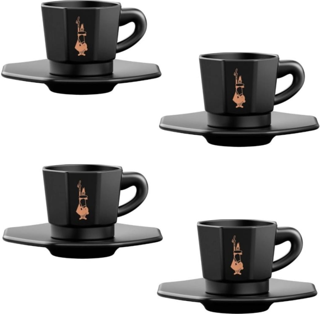 Bialetti Espresso Tassen achteckig, 4er Set, schwarz/kupfer