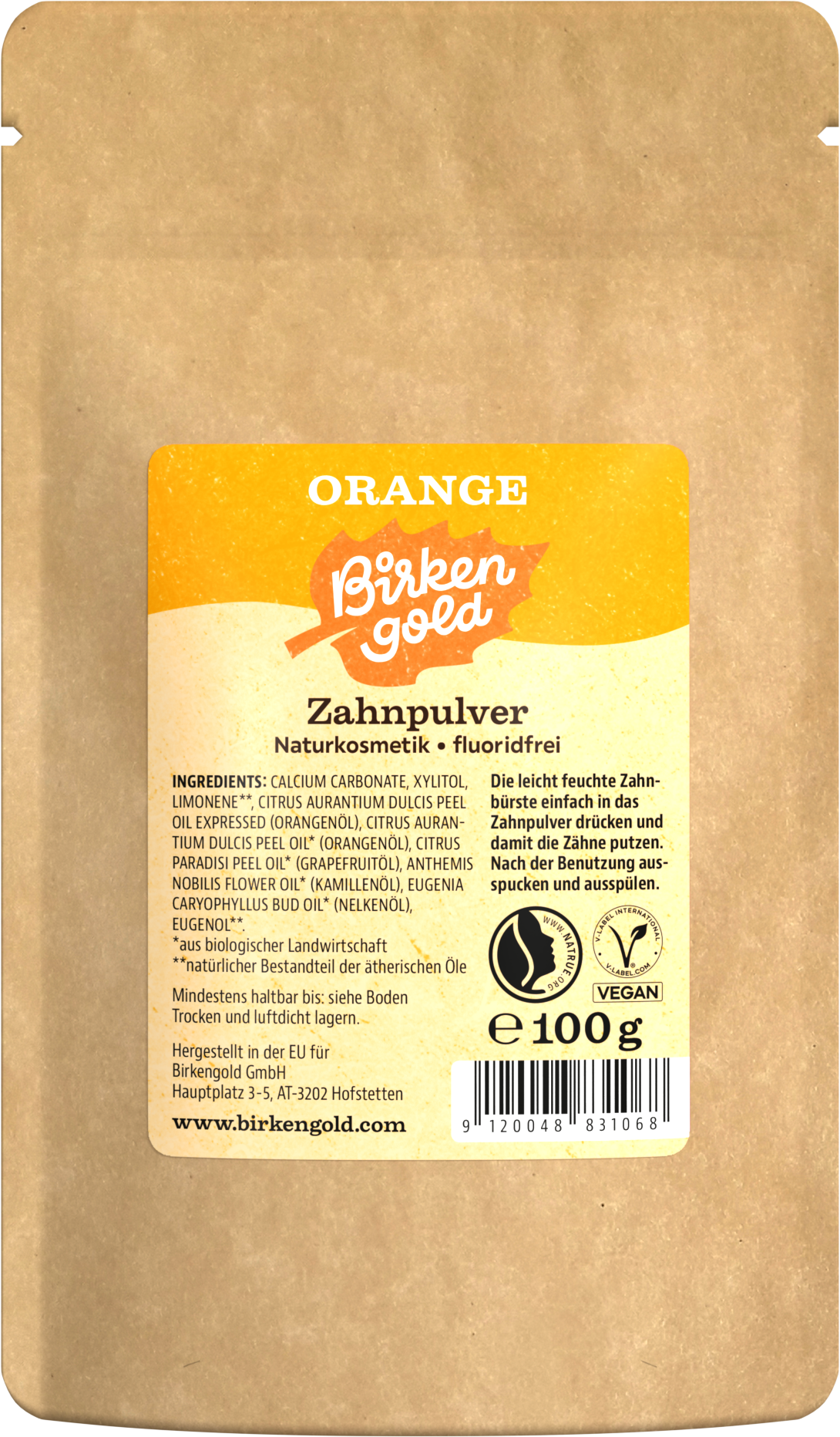 Birkengold Zahnpulver Orange, Nachfüllpackung 100g