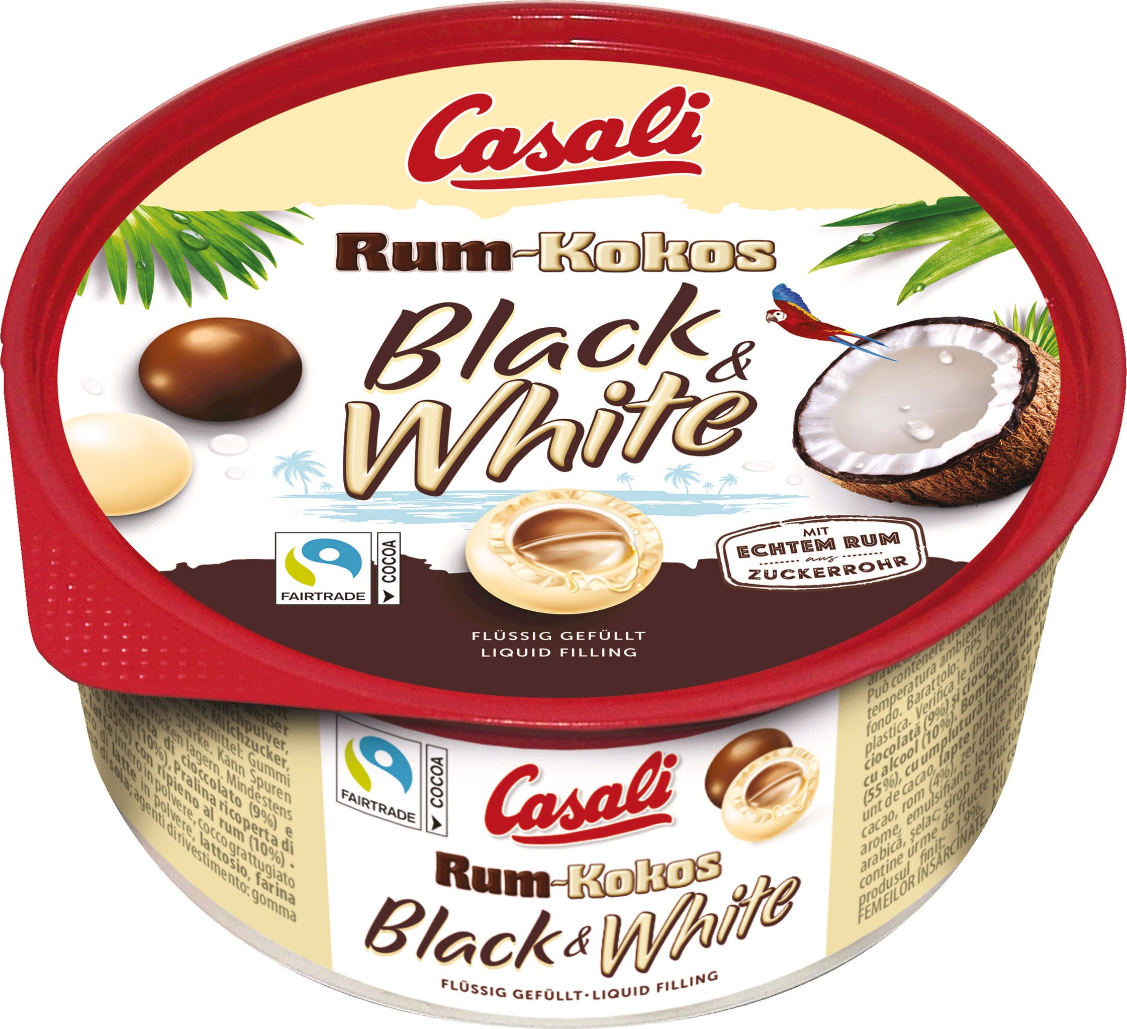 Für alle, die bisher an der Qual der Wahl verzweifelt sind, hier kommt die Lösung! Die wiederverschließbare Casali Rum-Kokos Black & White Dose enthält die zwei Sorten der köstlichen Rumkugeln: