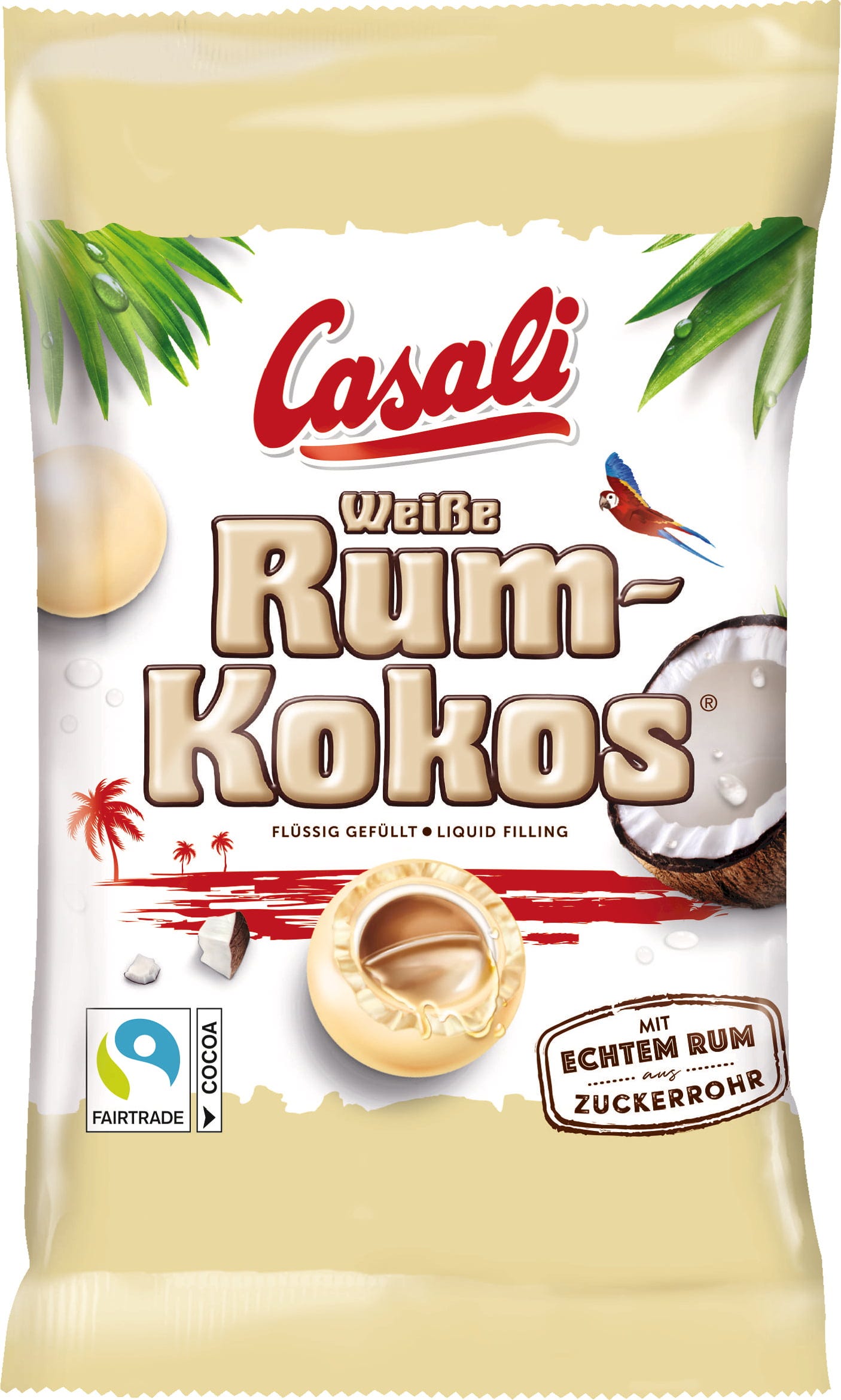Der Klassiker im neuen Gewand - mit Rum Kokos weiß präsentiert Casali seine beliebten Rumkugel nun in weißer Schokolade und bietet mit diesen eine gelungene Neuinterpretation des Süßigkeitenklassikers aus Österreich. Der Kern aus flüssigem Rum ist umhüllt von feinen Kokosraspeln und einer dicken Schicht weißer Schokolade, sodass ein einzigartiges Geschmackserlebnis mit unwiderstehlich karibischem Flair entsteht.