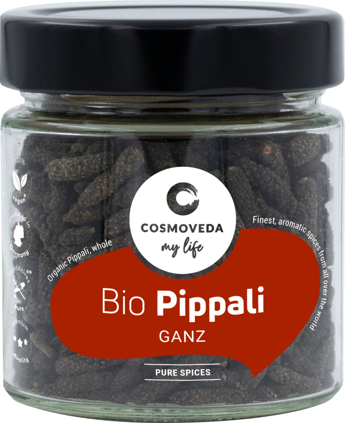 Cosmoveda Pippali / Langer Pfeffer kann gleich wie schwarzer Pfeffer verwendet werden, schmeckt jedoch scharf und würzig - ähnlich einer Mischung aus weißem Pfeffer, Muskat, Nelken und Kardamom.