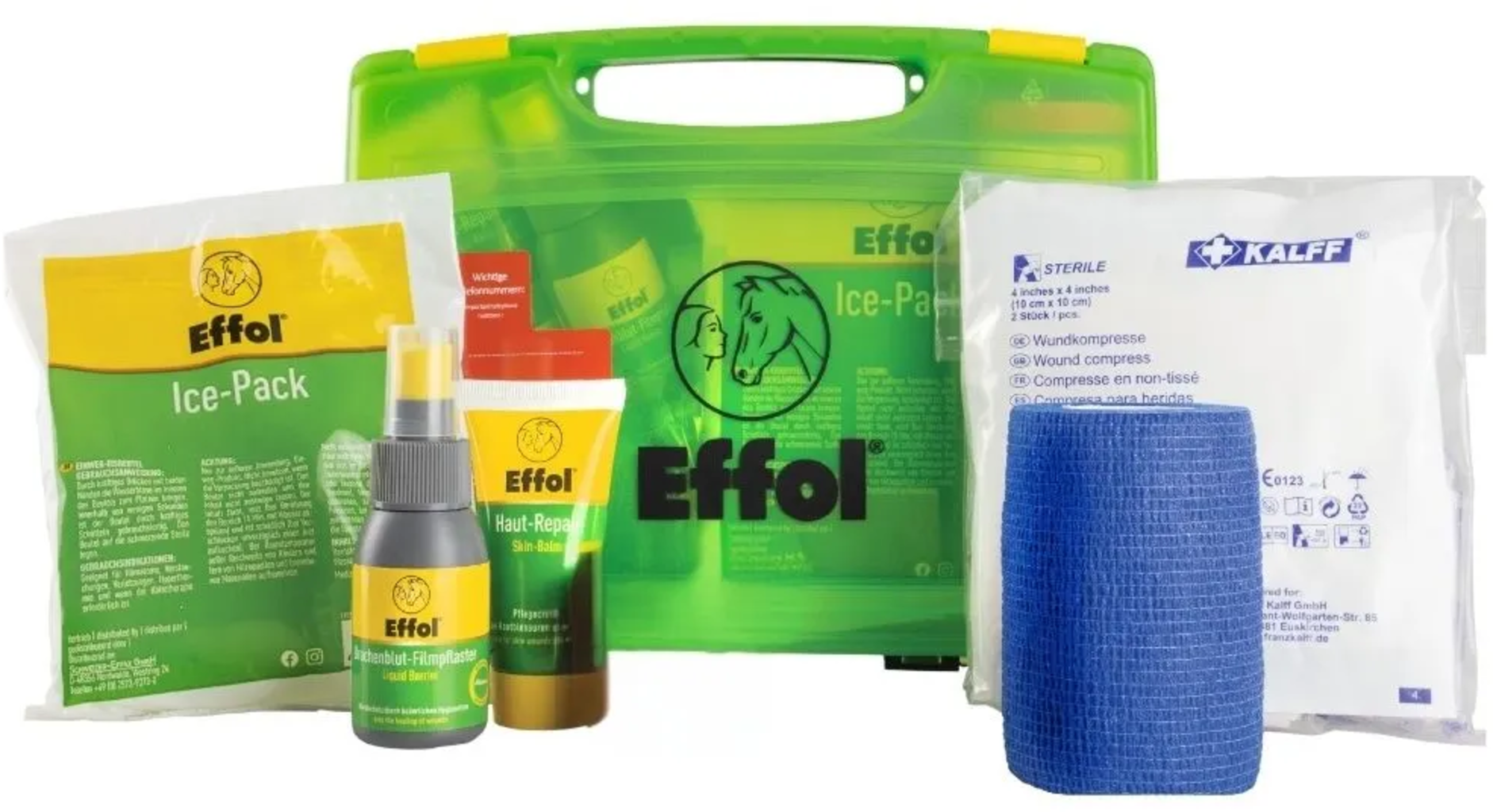 Dieses praktische Set enthält alles, was du für die Erstversorgung von Pferd und Reiter benötigst und ist ein unverzichtbarer Bestandteil im Stall. So hast du alle wichtigen Helfer immer griffbereit und kannst im Ernstfall sofort entscheidende Maßnahmen setzen.