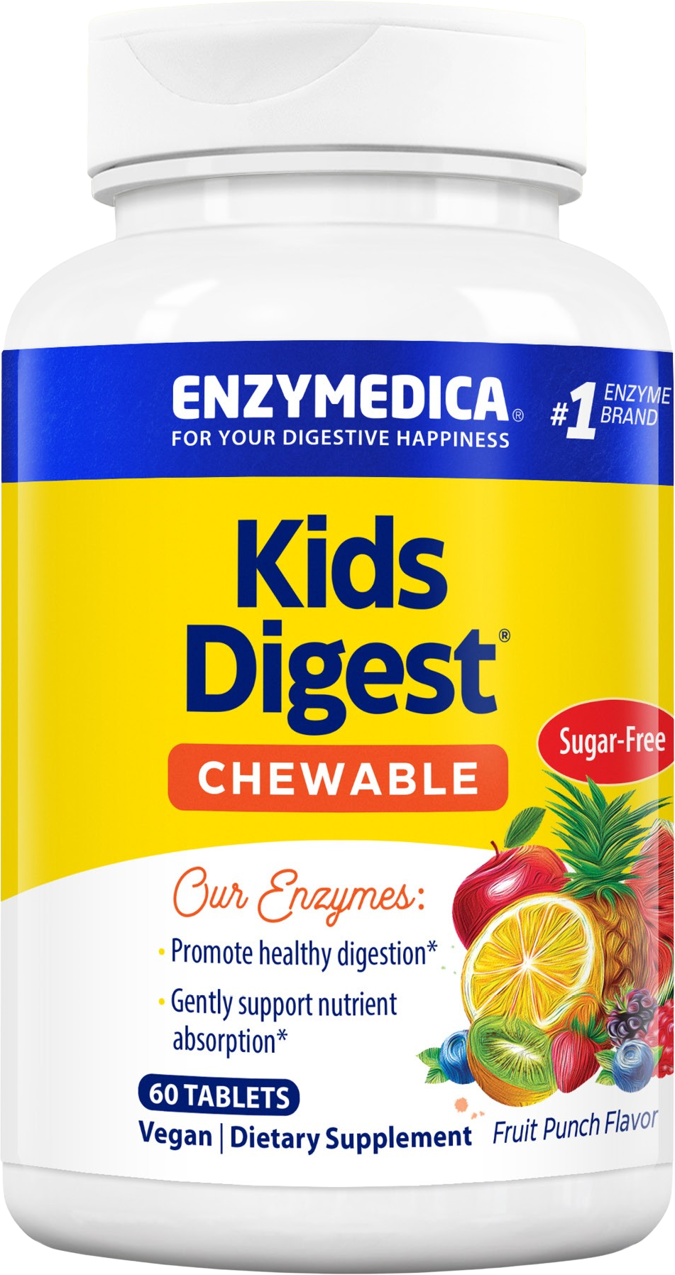 Kids Digest Chewable ist eine Mischung aus pflanzenbasierten Enzymen, die im menschlichen Körper vor allem im Verdauungstrakt vorkommen.