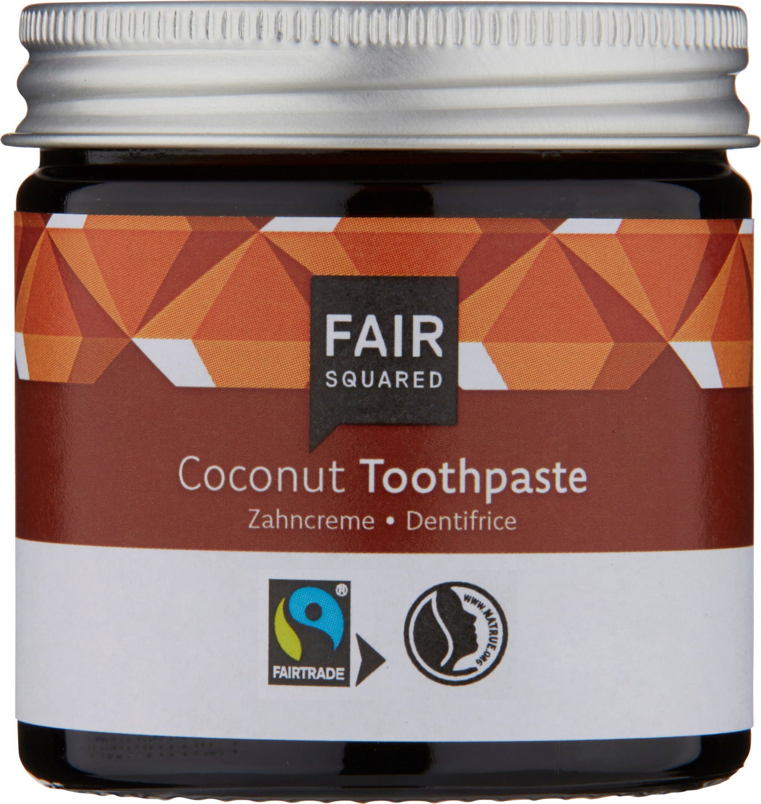Die nachhaltige und fluoridhaltige Zahncreme von FAIR SQUARED sorgt für eine sanfte Reinigung, einen angenehmen Atem sowie ein frisches Mundgefühl. Verpackt im nachhaltigen und plastikfreien Braunglas.