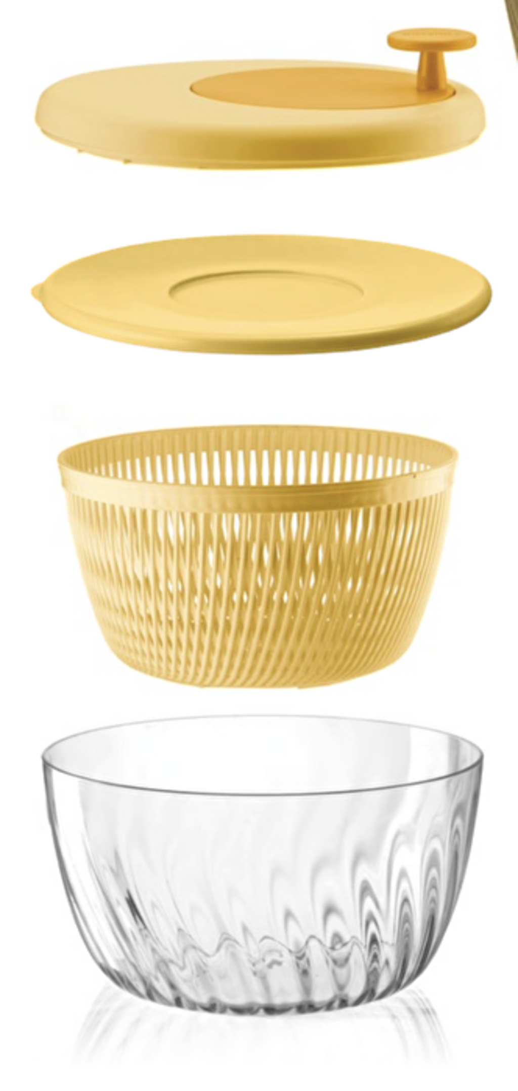 - 4-teiliges Set, bestehend aus Salatschüssel, Schleuderkorb, Deckel mit Kurbel & Frischhaltedeckel