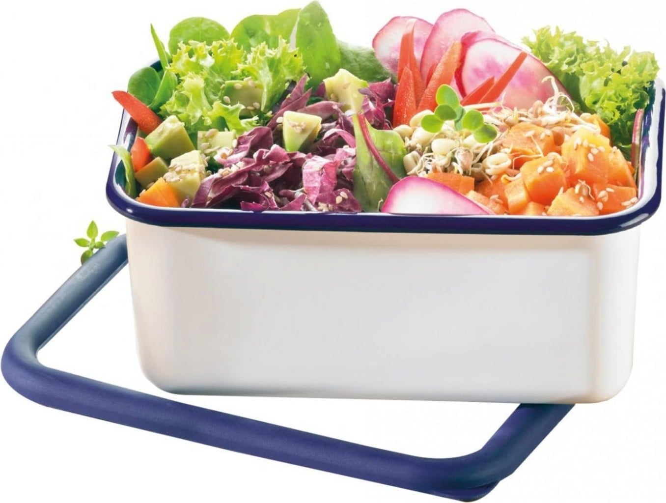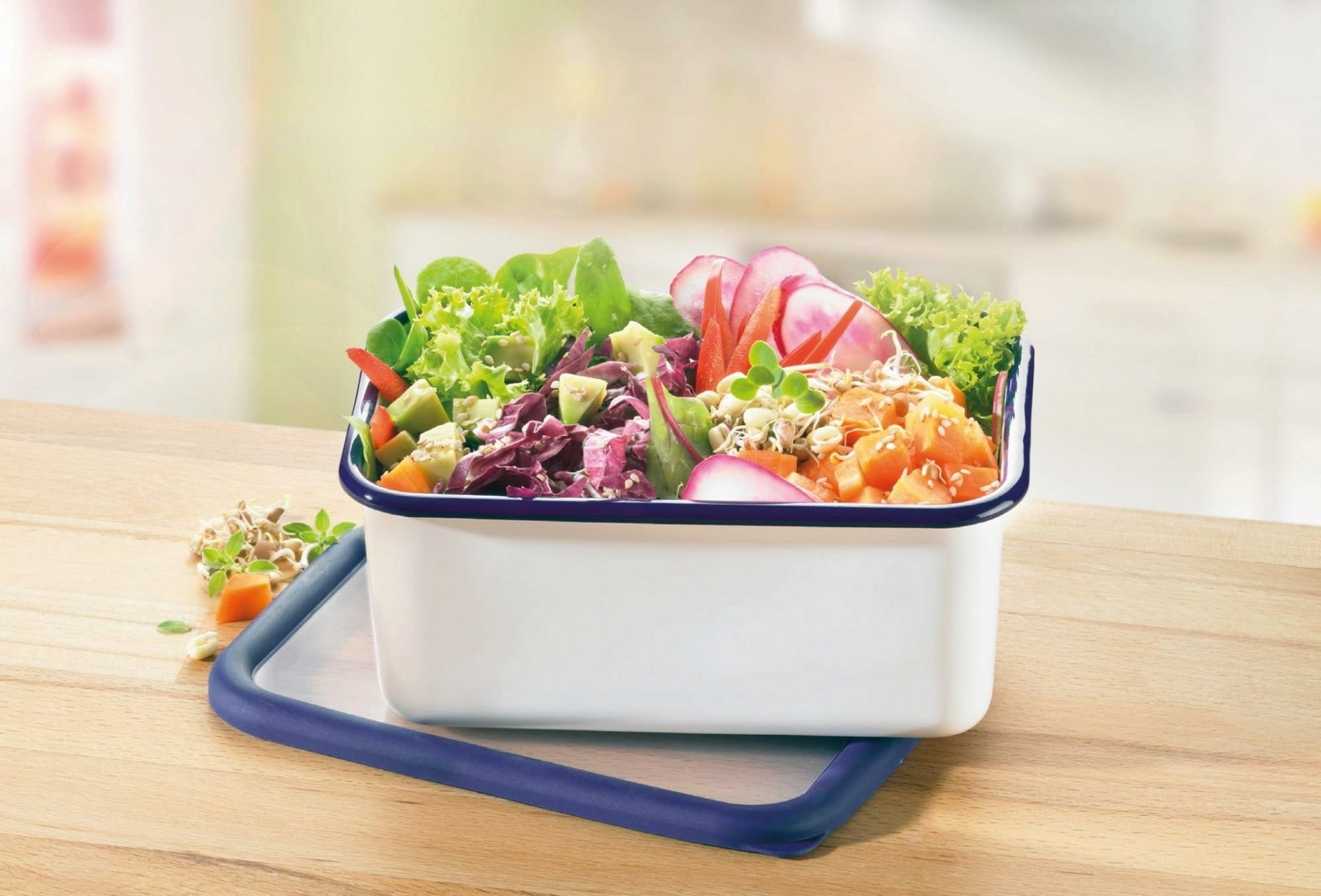 Diese schnitt- und kratzfesten Frischhaltedosen aus Emaille sind fantastische Allrounder, die gleich mehrfach zu Hilfe eilen: Sie eignen sich nicht nur zum Aufbewahren, sie dürfen auch als Backofenform für Braten, Lasagne und Co. ihre Multifunktionalität beweisen! Im Gefrierfach fühlen sie sich ebenso zuhause, Vorräte sind dank passgenauem Deckel zuverlässig geschützt.