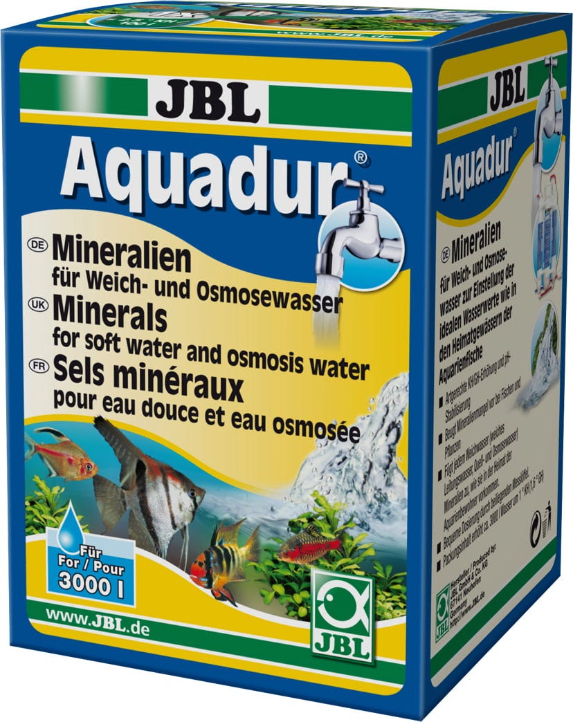 Mit JBL Aquadur kann jedes Weichwasser, je nach den Bedürfnissen der zu pflegenden Fisch, durch einfaches Einrühren des Pulvers auf jeden gewünschten Härtegrad eingestellt werden. JBL Aquadur ist gleichermaßen geeignet für Umkehrosmosewasser, durch Ionentausch enthärtetes Leitungswasser und Regenwasser. JBL Aquadur bietet sich vor allem dann zur Aufhärtung an, wenn aufgrund des Schadstoffgehalts im Ausgangswasser eine Aufbereitung über Umkehrosmose oder Ionenaustausch erfolgen muss. Darüber hinaus besitzt mit JBL Aquadur aufbereitetes Wasser eine für die meisten tropischen Fische vorteilhaftere Ionenverteilung als übliches Leitungswasser.