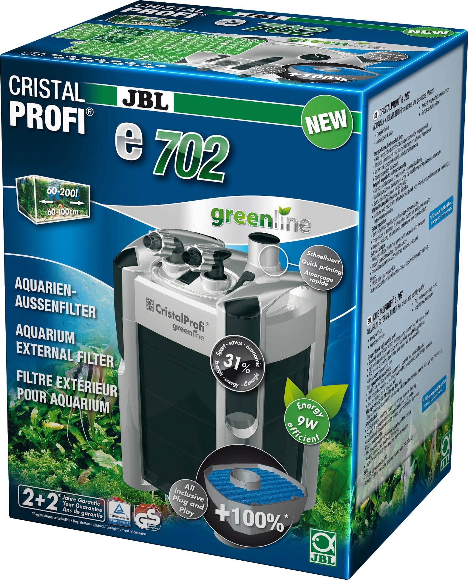 Mit dem weiter entwickelten JBL CristalProfi greenline hat JBL einen energieeffizienten und zuverlässigen Außenfilter mit hoher Standzeit entwickelt.