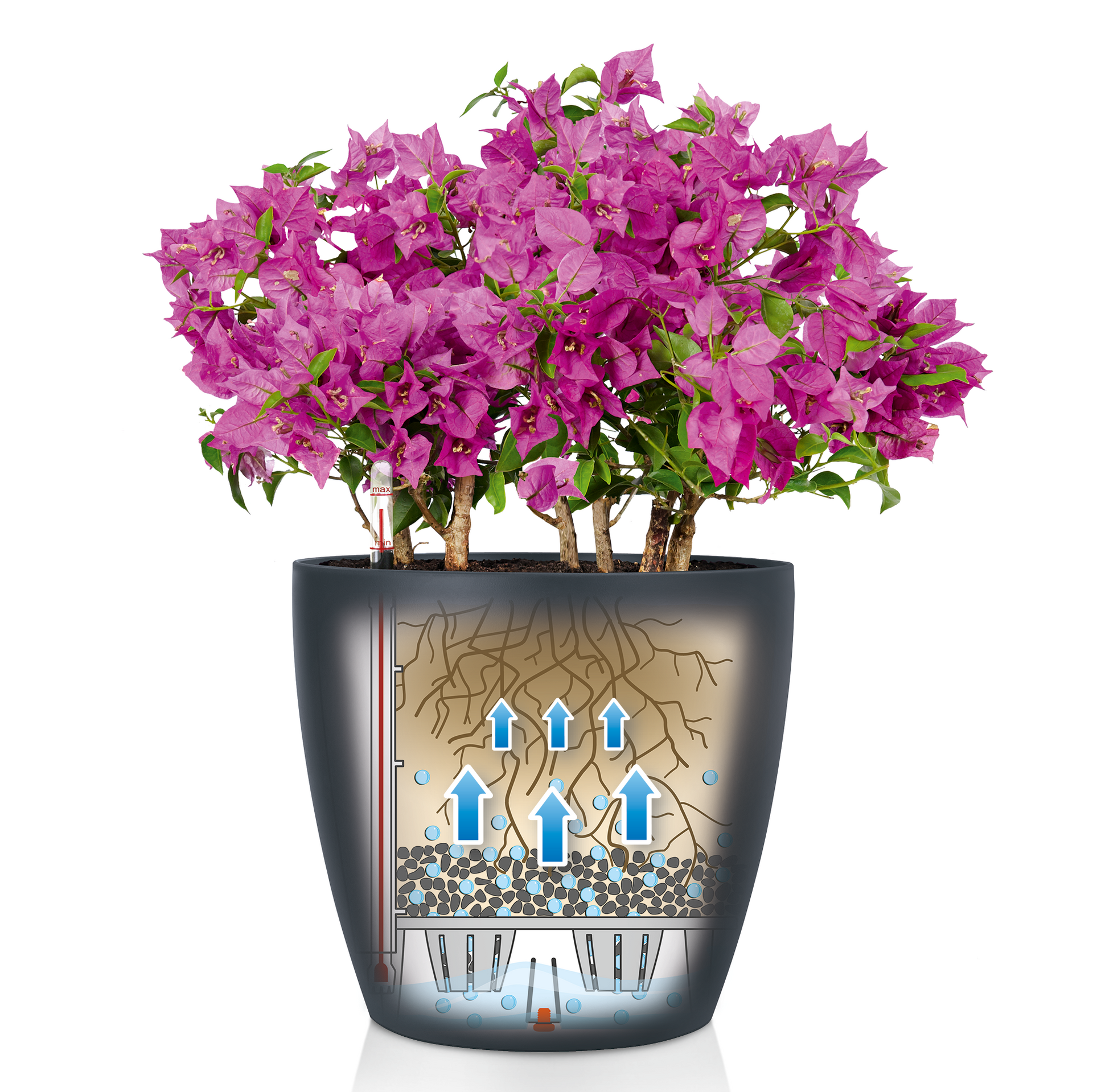 - 1x Gefäß mit Regenwasser-Überlauffunktion