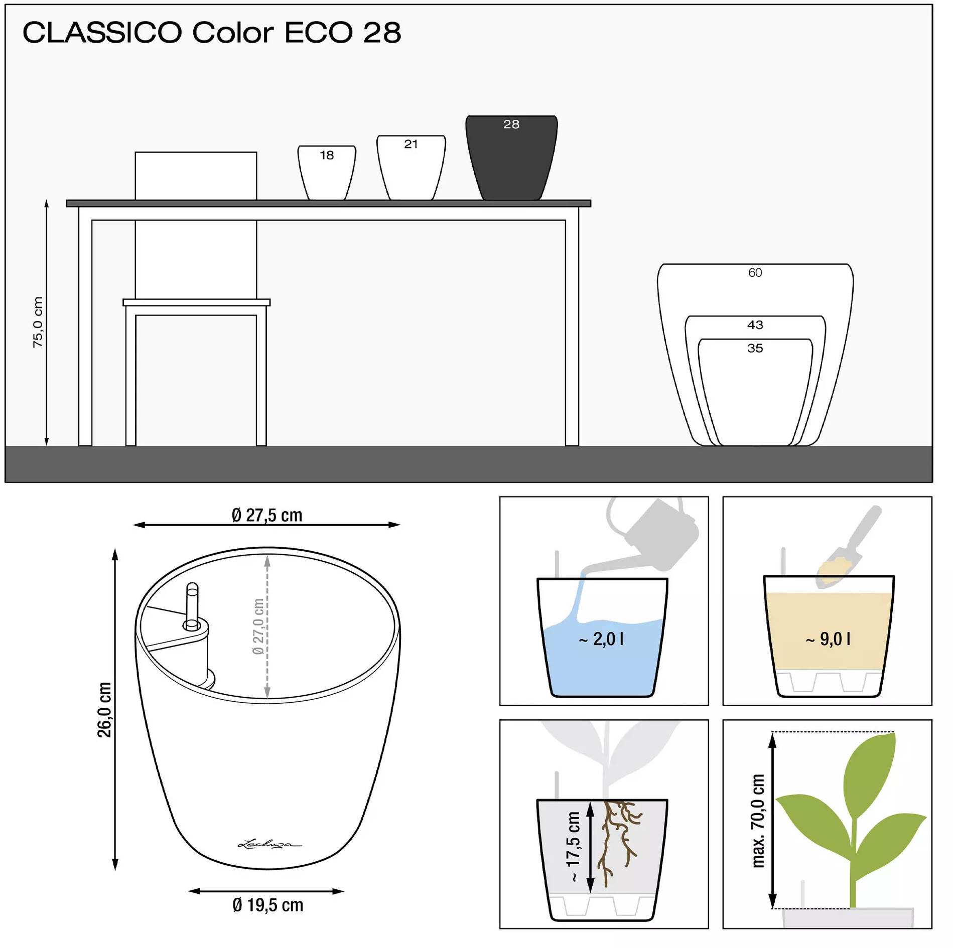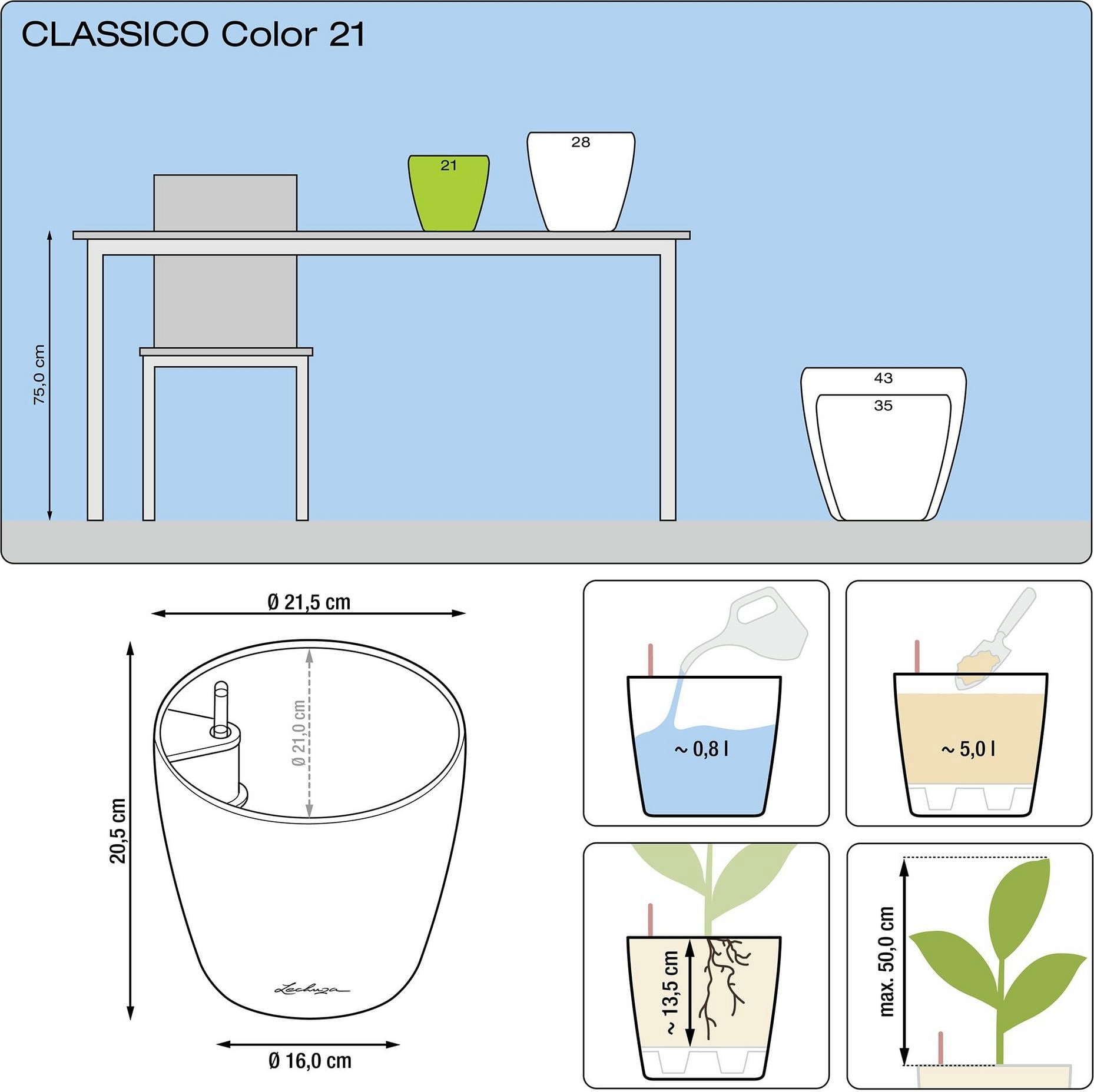 Erfahrungsberichte in Deutsch für Lechuza Pflanzgefäß CLASSICO Color 21
