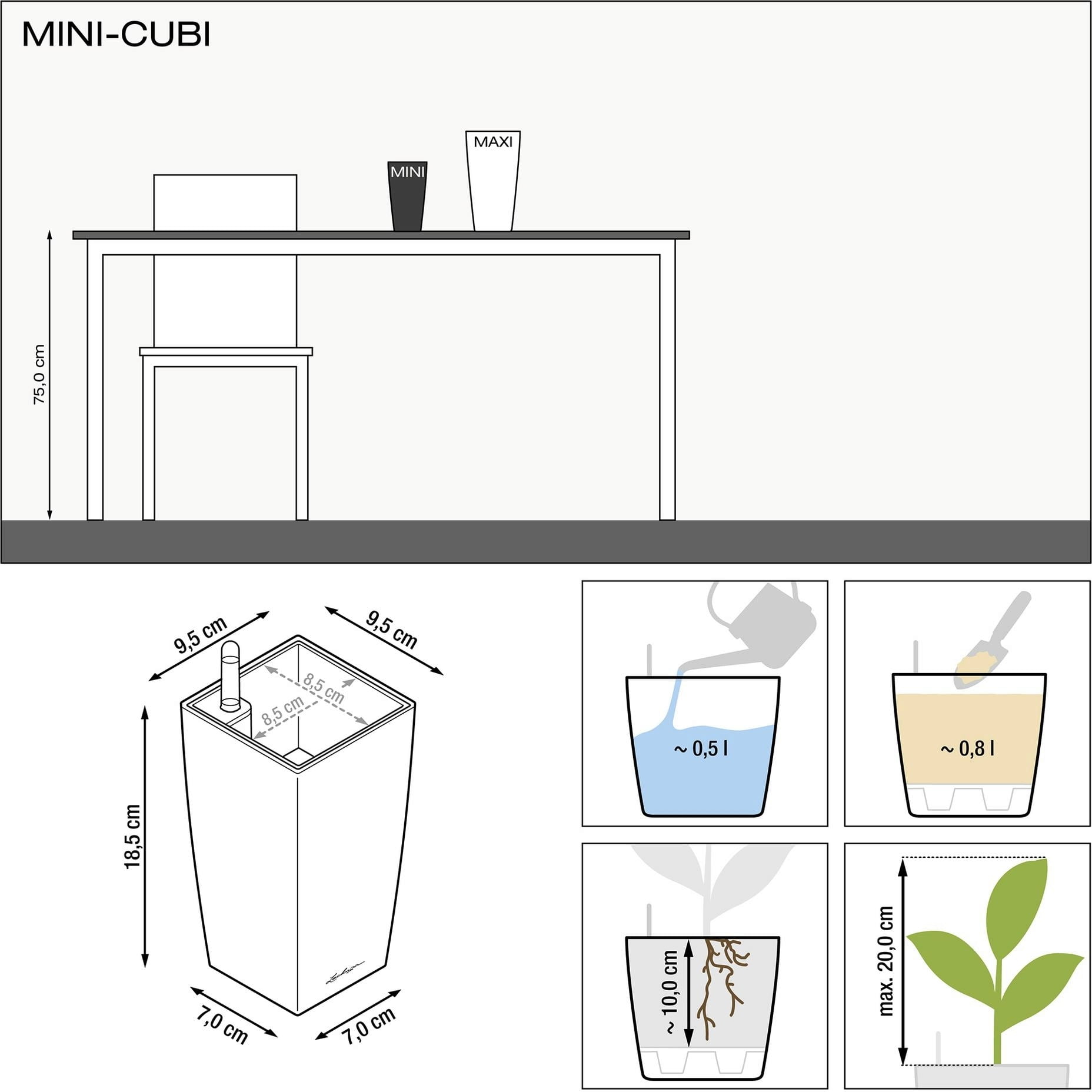 Erfahrungsberichte in Deutsch für Lechuza Tischgefäß MINI CUBI Premium