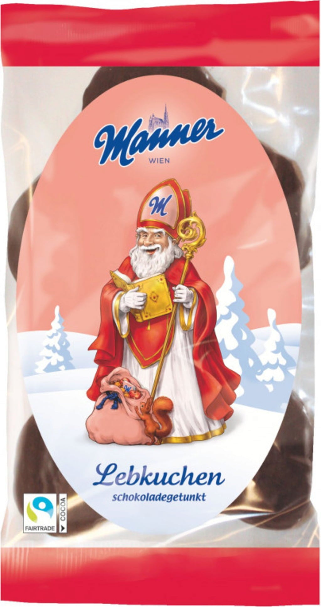 Der mit Schokolade überzogene Nikolaus Lebkuchen von Manner wird nach einer traditionellen Rezeptur hergestellt. Super saftig und aromatisch ist er perfekt zum Befüllen der großen & kleinen Nikolaussäckchen geeignet. Die Rezeptur ist vegan und frei von Nüssen.