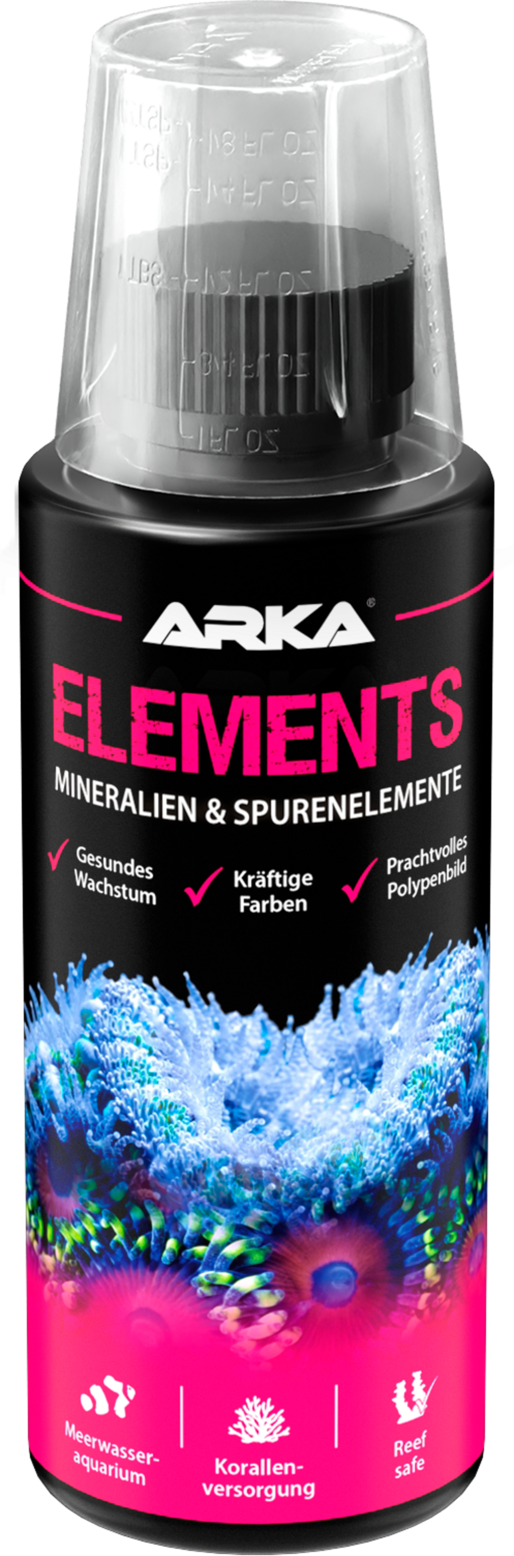 Mit 70 wichtigen Premium Mineralien und Spurenelementen sorgt Elements für gesundes Wachstum und kräftige Farben bei Stein- und Weichkorallen. Gleichzeitig schafft es ein prächtiges Polypenbild und trägt zur Stabilisierung des pH-Wertes bei.