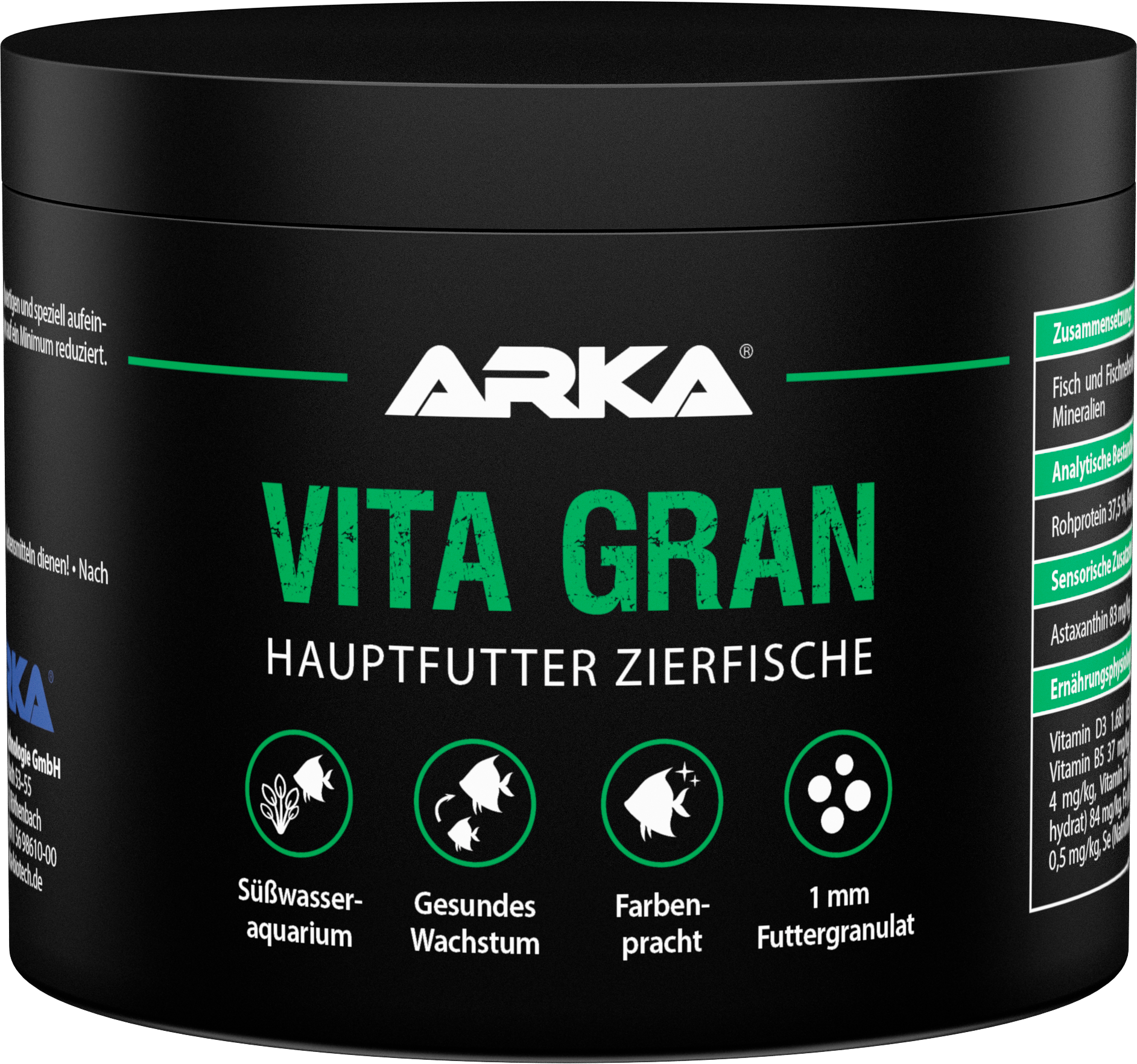Als Hauptfutter für Zierfische in Süßwasser-Aquarien kombiniert VitaGran hochwertigste Inhaltsstoffe und unterstützt so ein gesundes Wachstum, die natürliche Farbgebung und reduziert Ausscheidungen auf ein Minimum. Hergestellt in einem vitaminschonenden Kaltpressverfahren. Verzichtet auf Spirulina (Cyanobakterien) und minderwertiges Fischmehl.