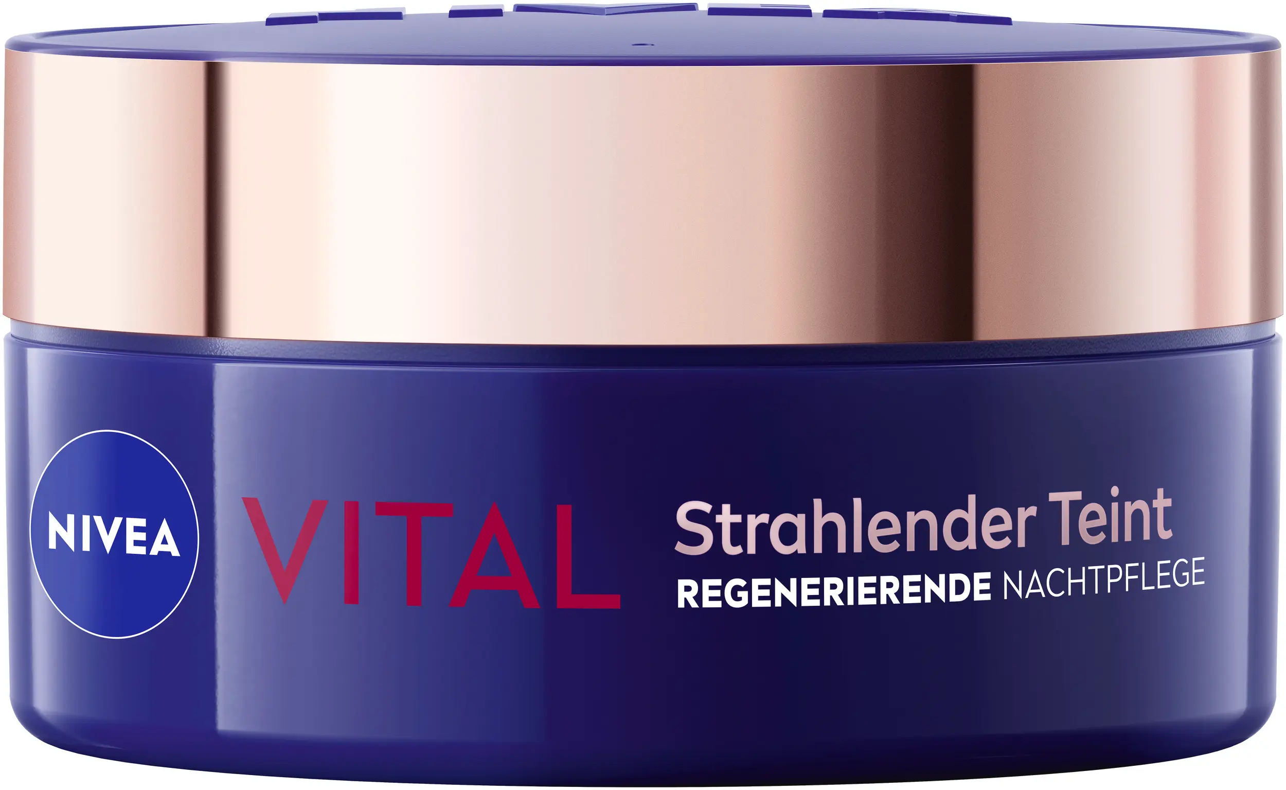 Die regenerierende NIVEA VITAL Nachtpflegecreme pflegt die Haut intensiv über Nacht. Ihre reichhaltige, vegane Formulierung kann die nächtliche Hautregeneration und einen strahlenderen Teint am nächsten Morgen unterstützen. Rosenblütenöl, Calcium und Panthenol pflegen dabei bis in die tieferen Hautschichten. Ideal geeignet ist die Creme für reife, fahle Haut.