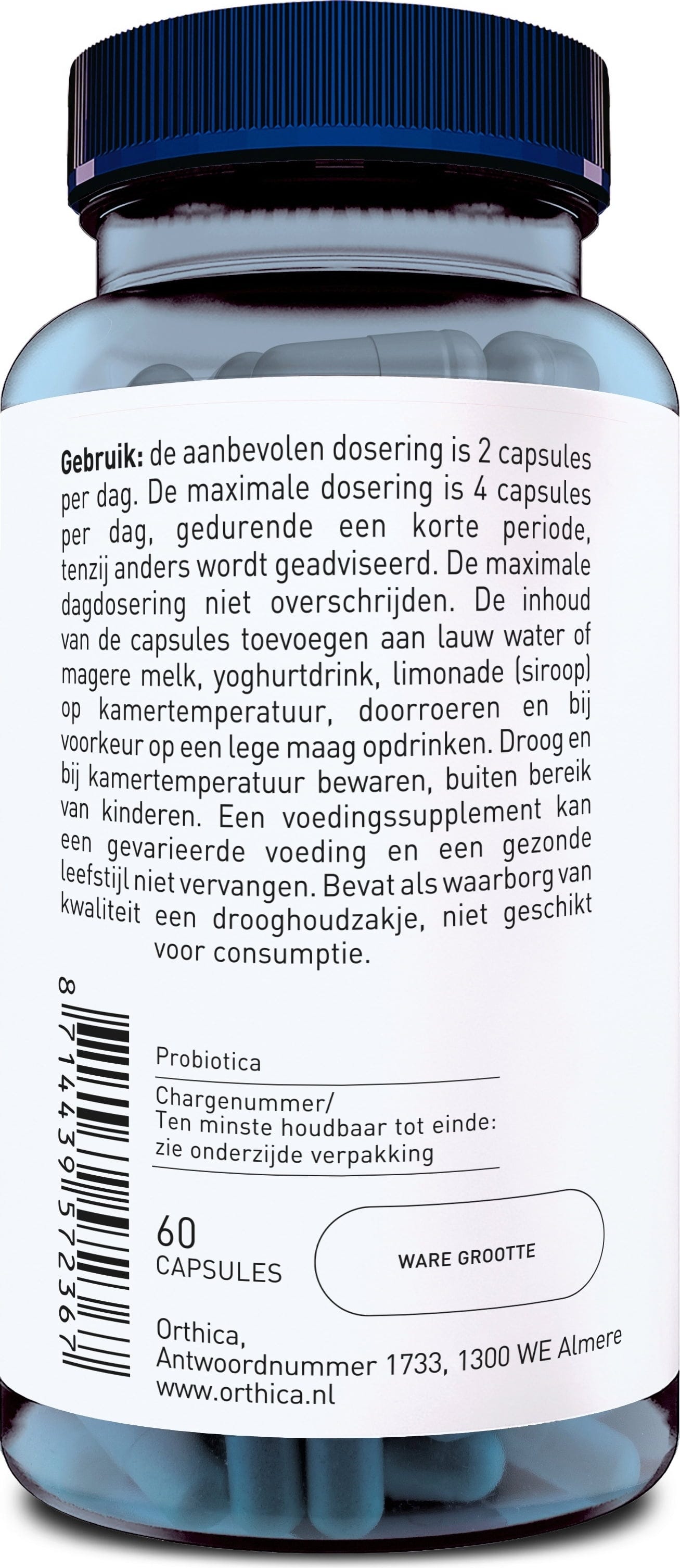 Die Orthica Orthiflor 50+ liefert eine aufeinander abgestimmte Auswahl an sechs verschiedenen Milchsäurebakterienkulturen, die zusammen pro empfohlener Tagesdosis 2 Milliarden koloniebildende Einheiten (KBE) enthalten. Die Rezeptur wird durch präbiotische Pflanzenfasern wie Inulin und Fructooligosaccharide (FOS) ergänzt, die als Nährstoffquelle für die mikrobiellen Kulturen. Die Rezeptur richtet sich an Menschen ab etwa 50 Jahren.