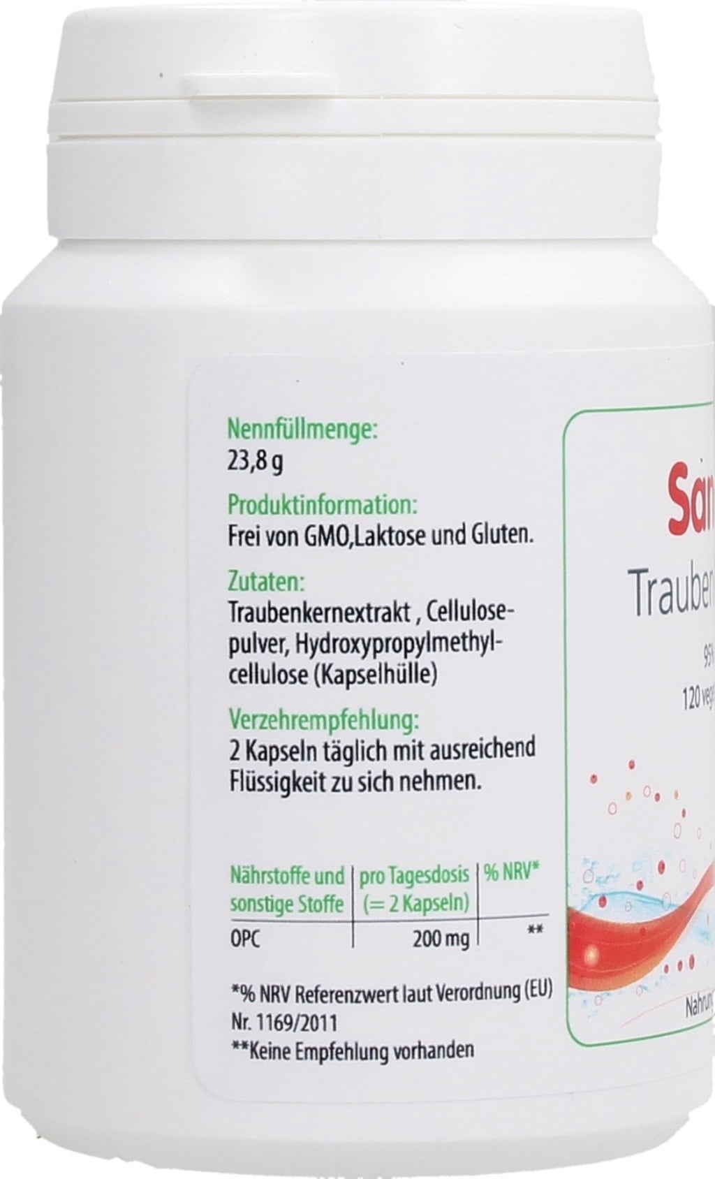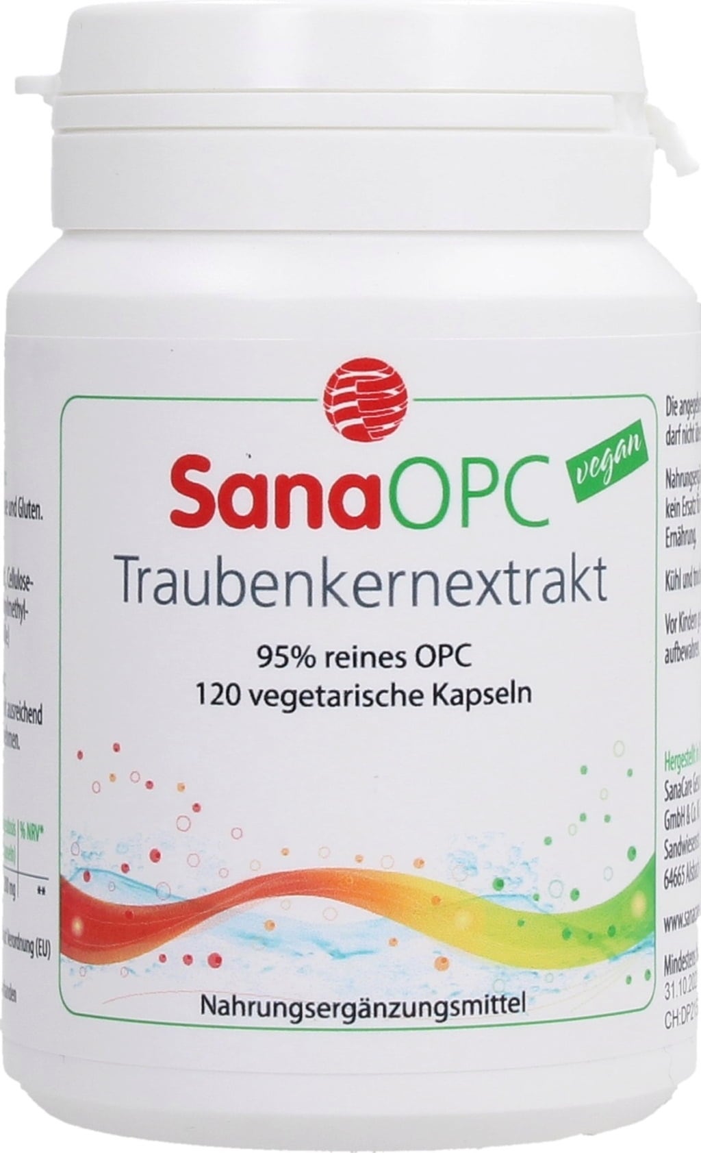 Sana OPC ist ein zu 95% reines Traubenkernextrakt mit 100 mg Inhalt pro Kapsel.