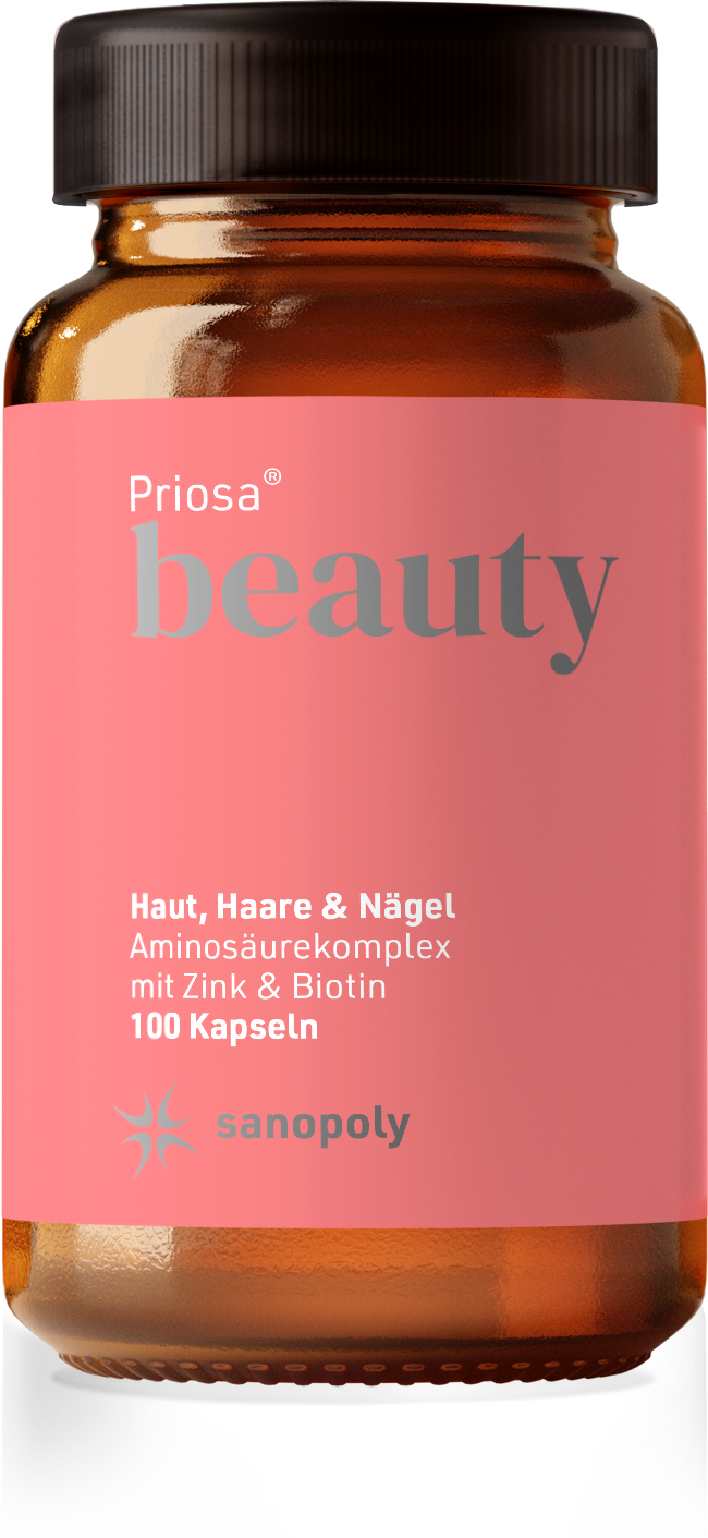 Das vegane Nahrungsergänzungsmittel Priosa®BEAUTY enthält eine vielfältige Kombination aus verschiedenen Vitaminen, Mineralstoffen und Aminosäuren. Zudem wird es ohne künstliche Aroma-, Farb- und Konservierungsstoffe hergestellt und beinhaltet kein Milchpulver.