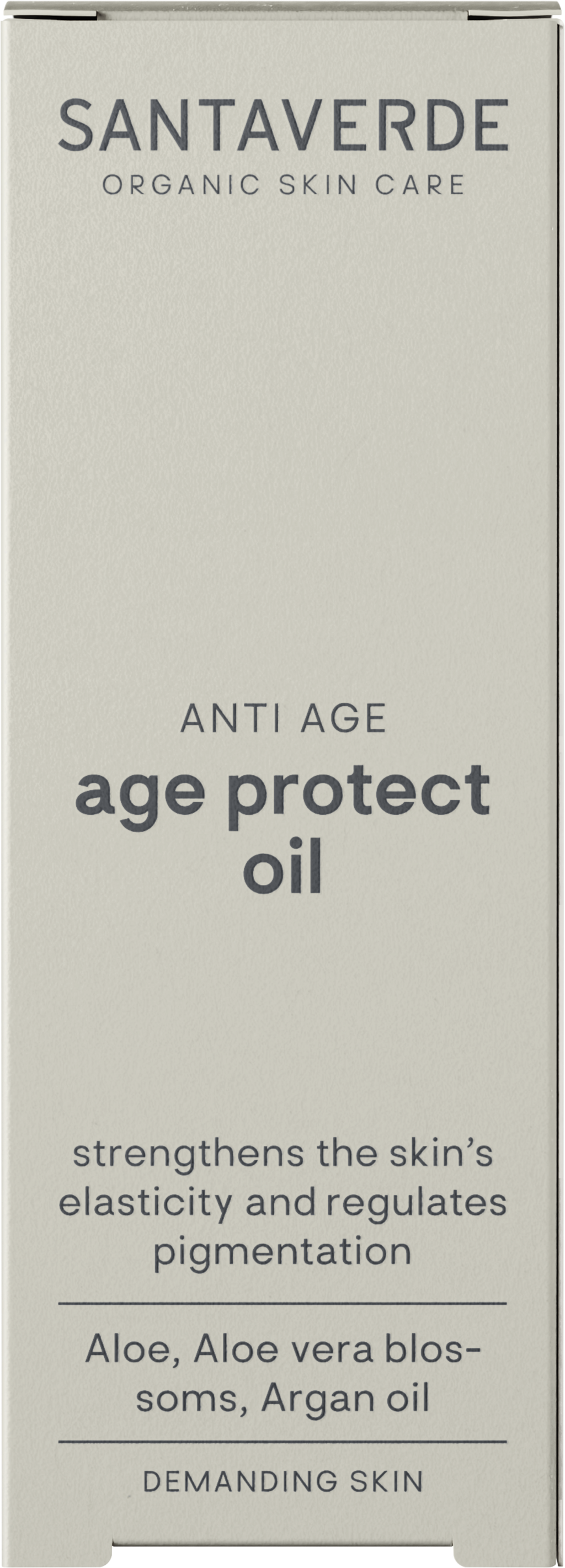 Das feine Age Protect Oil versorgt die Haut mit aufbauenden Lipiden, schenkt Geschmeidigkeit und beugt den Zeichen der Hautalterung vor. Wertvolle Samenöle aus Arganfrucht, Aprikose und Distel unterstützen die natürliche Barrierefunktion, glätten Trockenheitsfältchen und sorgen für Geschmeidigkeit. Extrakte aus Aloe Vera-Blüten schützen die Haut vor dem schädlichen Einfluss freier Radikale. Zusätzlich bietet ein Aktivstoffkomplex aus hochwertigen Wurzelextrakten ebnende Eigenschaften. Die seidige Textur zieht sofort ein und verleiht ein geglättetes und ebenmäßiges Hautbild.
