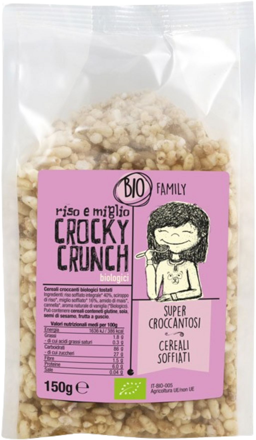 Sapore di Sole Bio Crocky Crunch - gepuffter Reis & Hirse, 150 g
