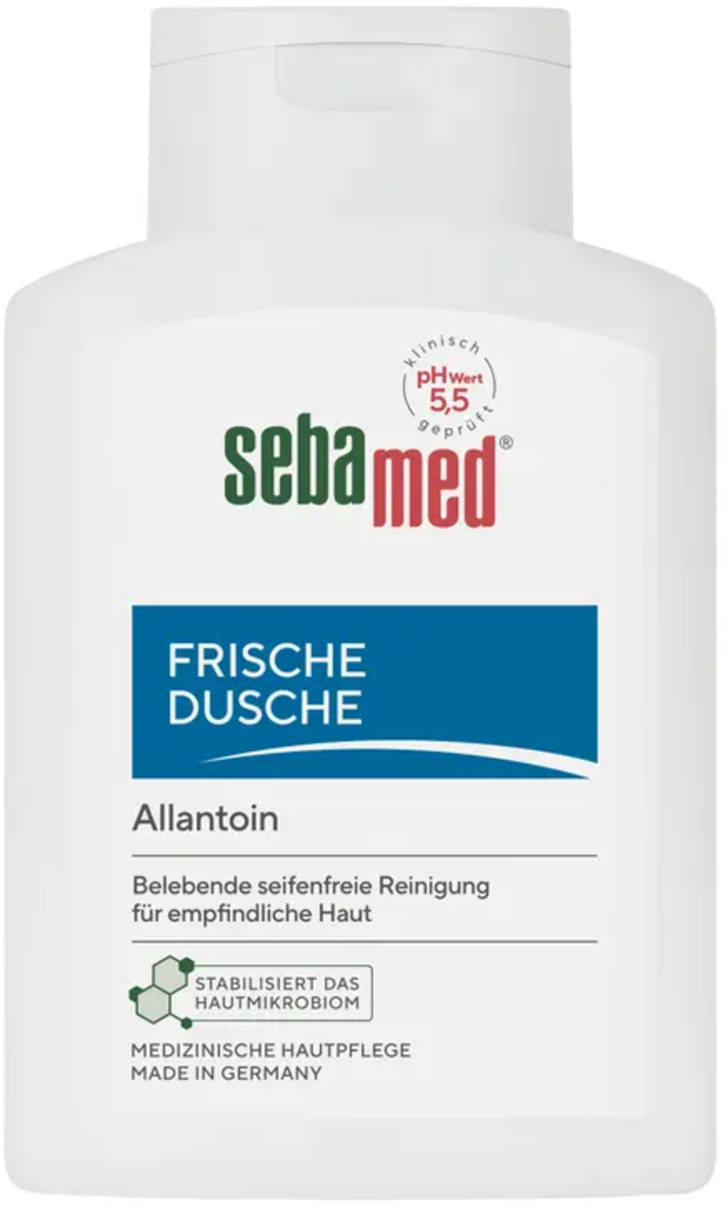 Die Frische Dusche von sebamed kann dank pH-Wert 5,5 die hauteigene Schutzbarriere unterstützen. Die milde und erfrischende Formel mit Allantoin und Milchsäure reinigt die Haut ganz besonders sanft und spendet wichtige Feuchtigkeit. Sie ist problemlos für die tägliche Anwendung bei sensibler und empfindlicher Haut geeignet.