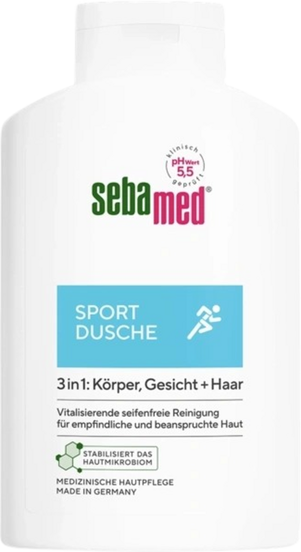 Die mikroplastikfreie 3in1 Sport Dusche von sebamed reinigt sowohl deine sensible und strapazierte Haut am Körper und im Gesicht als auch dein Haar zuverlässig und schonend nach jeder Sporteinheit. Sofort erhältst du ein erfrischtes und vitalisiertes Hautgefühl. Die Formulierung hat einen hauteigenen pH-Wert von 5,5 und unterstützt dadurch sogar den natürlichen Schutzmantel deiner Haut.