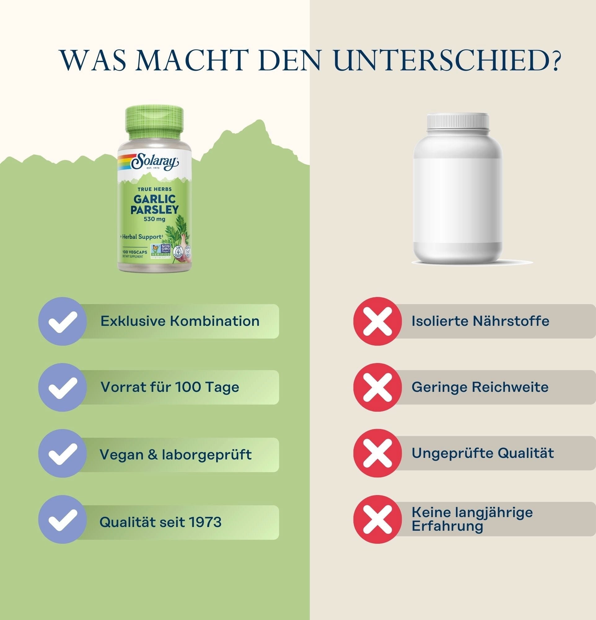 Erfahrungsberichte in Deutsch für Solaray Knoblauch & Petersilie Kapseln