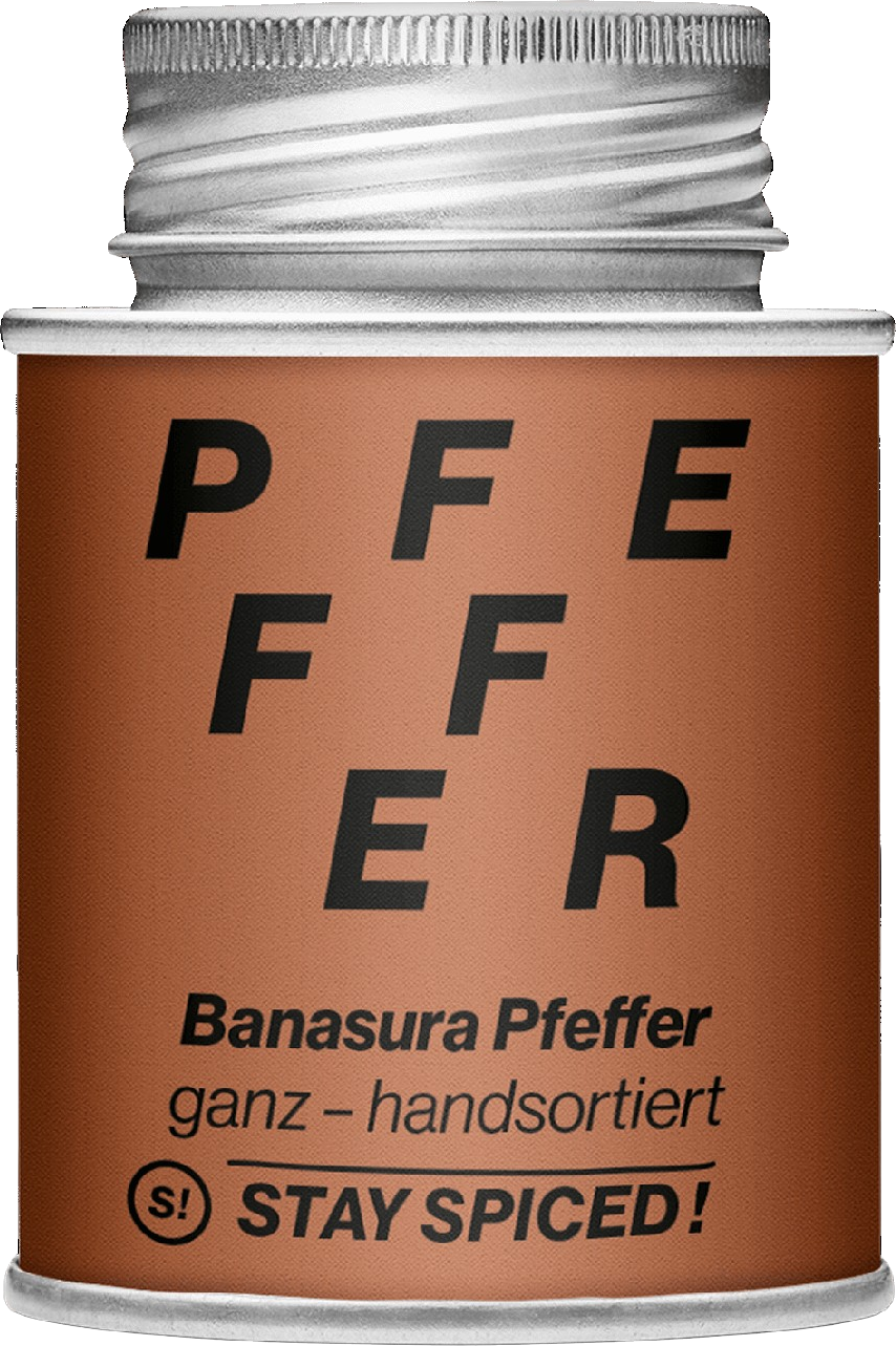 Der Banasura Pfeffer hat ein sehr intensives Bouquet an Aromen und passt besonders zu Steak, Wild und Pastagerichten. Auch als Finish-Gewürz für ein cremiges Risotto ein Gedicht.