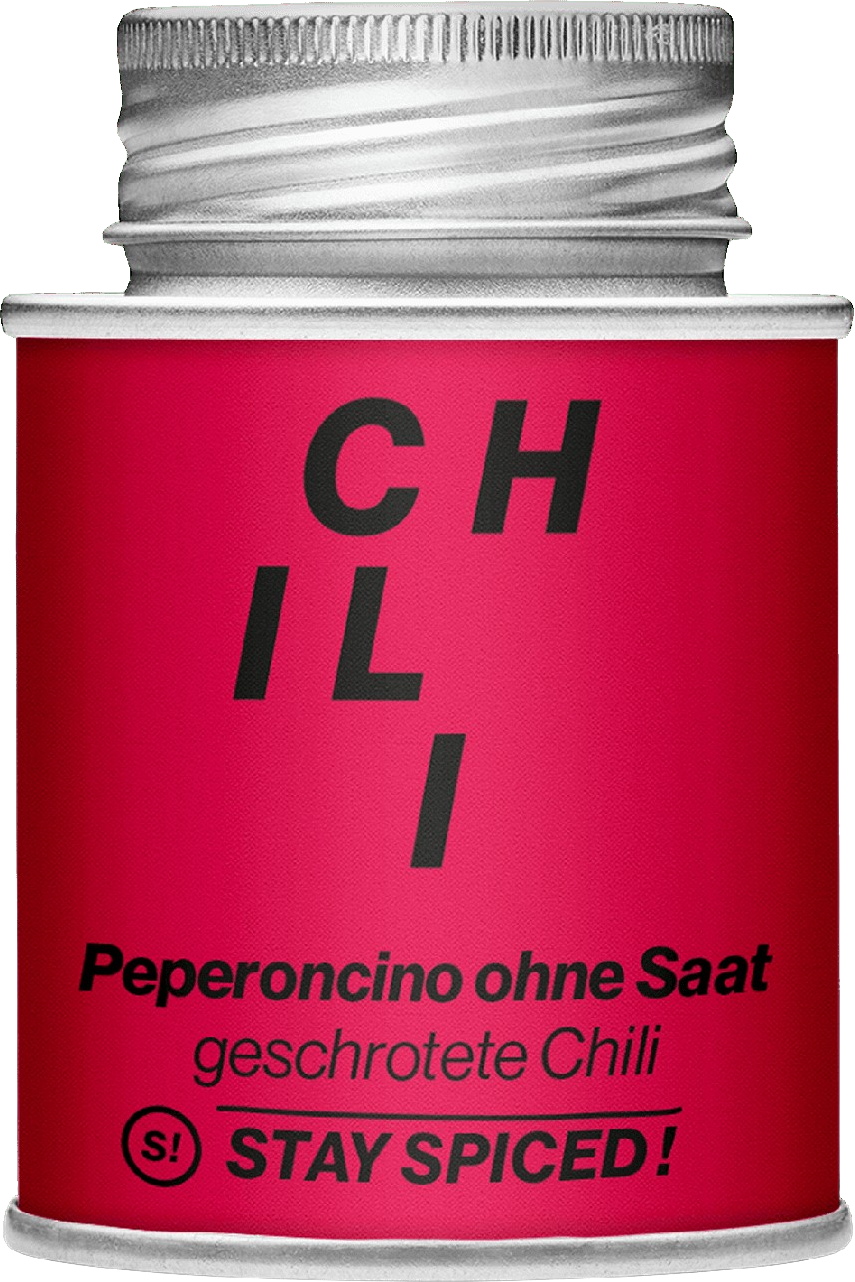 Für alle jene, die es zwar pikant aber nicht allzu scharf mögen: Für den geschroteten, roten Chili / Peperoncino von Stay Spiced! werden die Kerne und die feinen Innenhäutchen der Schoten entfernt. Somit bleibt zwar der würzige, erdige, süß-pikante Geschmack der Chili erhalten, aber der Schärfegrad wird deutlich gemildert (Schärfegrad 2 bis 3 von 10).