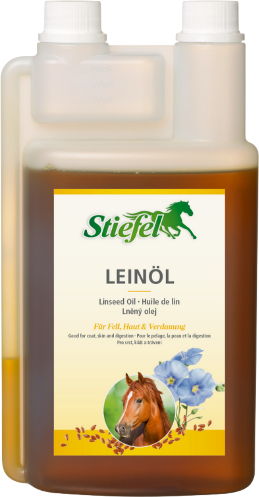 Stiefel Leinöl ist ein kaltgepresstes Naturprodukt. Stiefel Leinöl kann sich durch seine wertvolle Zusammensetzung positiv auf die Haut- und Fellqualität des Pferdes auswirken und zu einer gesunden Verdauung beitragen.