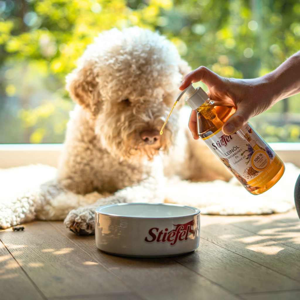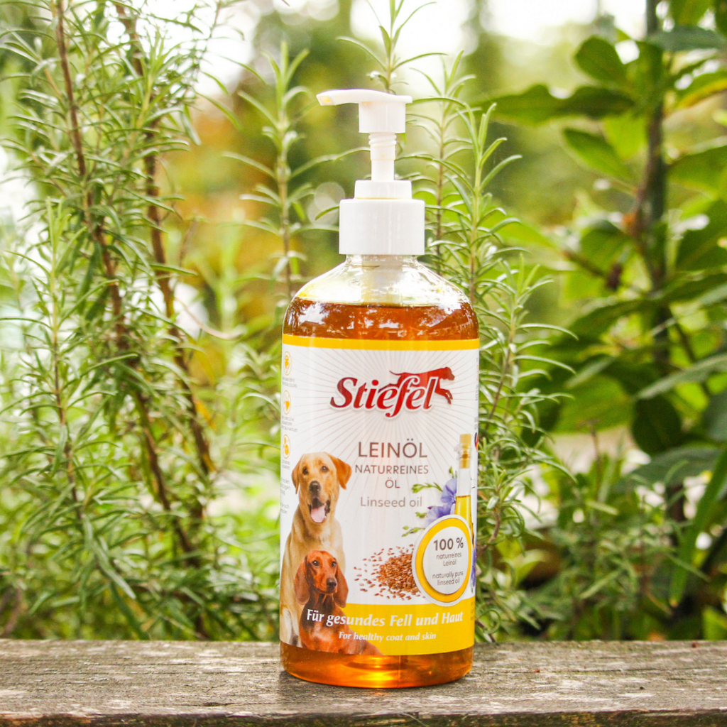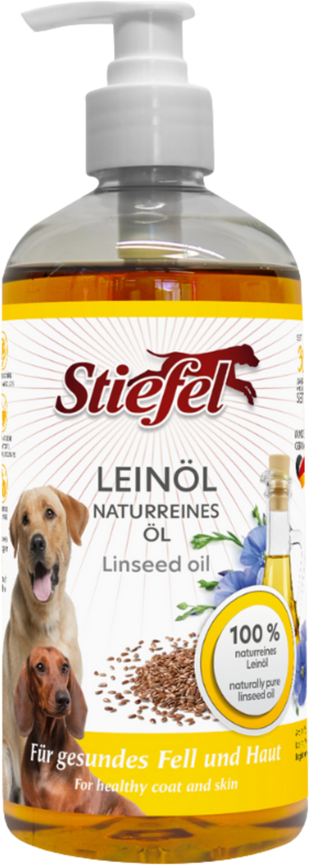 Stiefel Leinöl ist ein kaltgepresstes Naturprodukt. Stiefel Leinöl kann sich durch seine wertvolle Zusammensetzung positiv auf die Haut- und Fellqualität des Hundes auswirken und zu einer gesunden Verdauung beitragen.