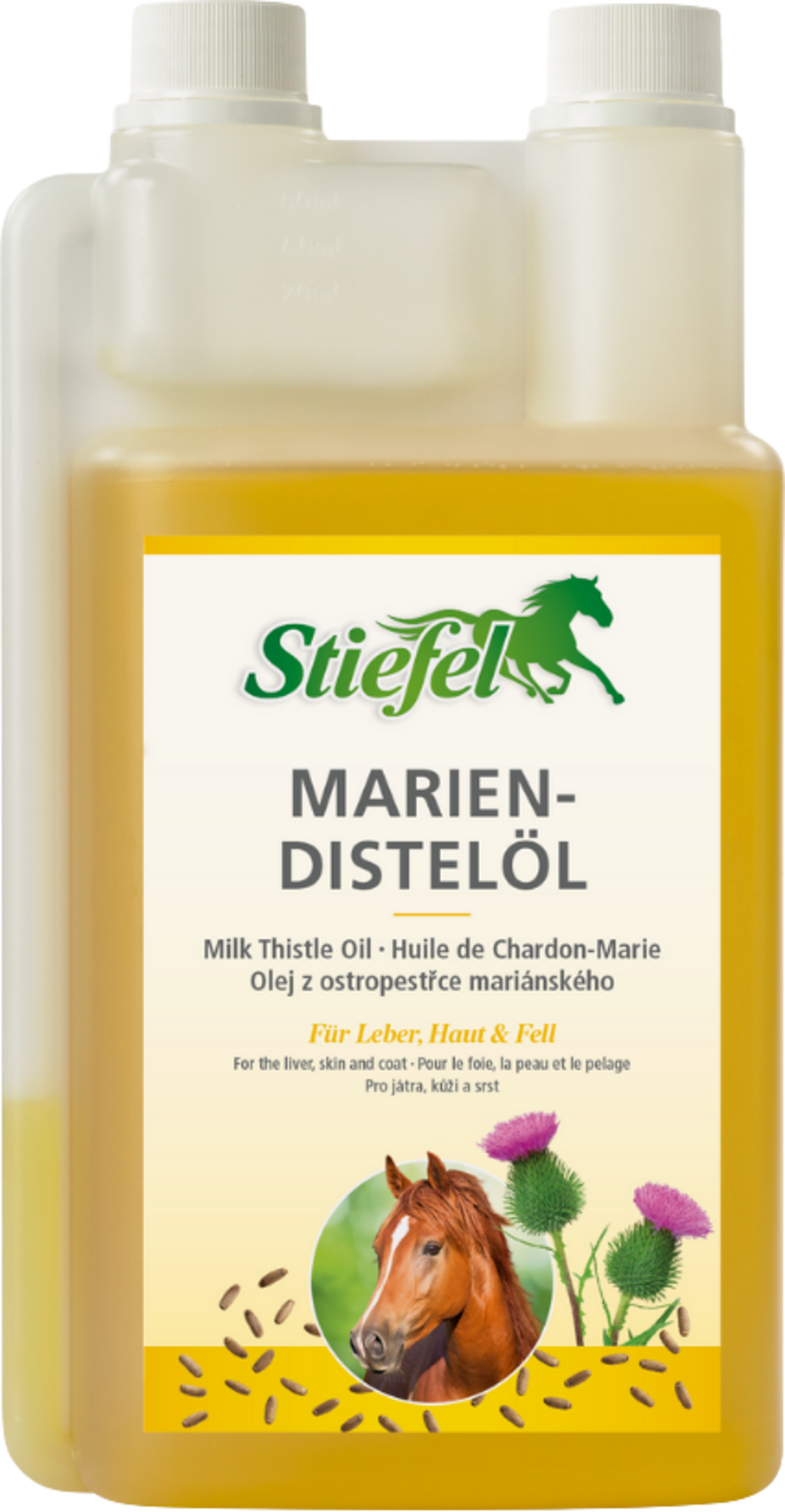 Stiefel Mariendistelöl ist ein 100 % naturreines Öl. Mariendistelöl kann den Leberzellstoffwechsel anregen und damit die Gesundheit fördern. Das Öl kann sich ebenfalls positiv auf Haut und Fell des Pferdes auswirken.