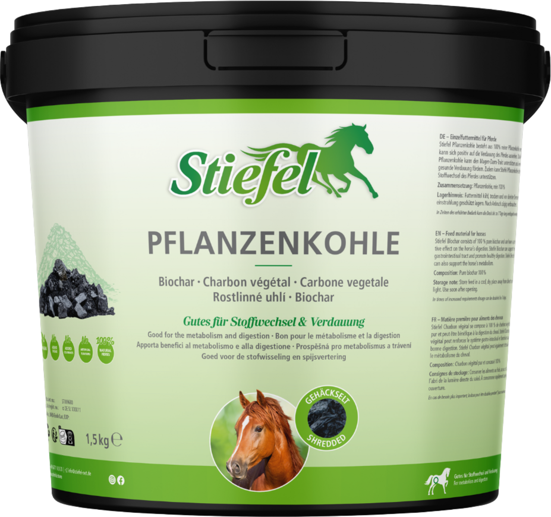 Stiefel Pflanzenkohle besteht aus 100 % reiner Pflanzenkohle und kann sich positiv auf die Verdauung des Pferdes auswirken. Stiefel Pflanzenkohle kann den Magen-Darm-Trakt unterstützen und eine gesunde Verdauung fördern. Zudem kann Stiefel Pflanzenkohle den Stoffwechsel des Pferdes unterstützen.