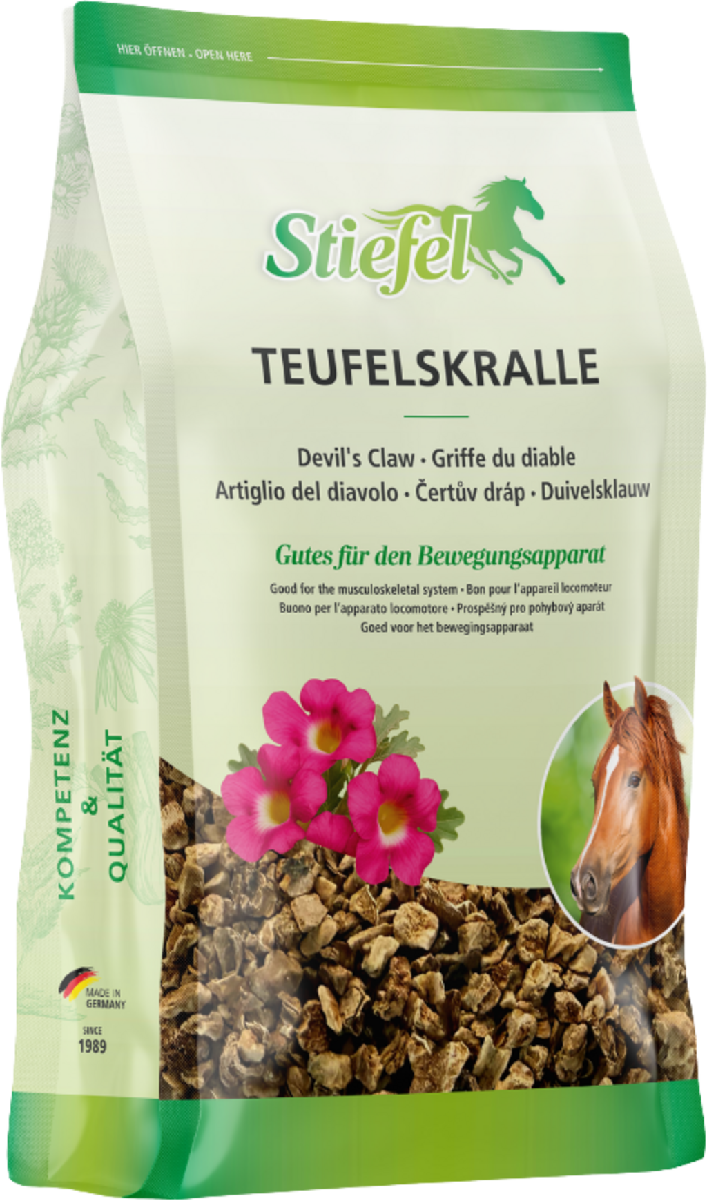 Stiefel Teufelskralle kann sich positiv auf die Gesunderhaltung von Gelenken, Sehnen und Knorpeln auswirken. Der gesunde Gelenkstoffwechsel kann positiv beeinflusst werden. Der gesamte Bewegungsapparat des Pferdes kann unterstützt und ein gesunder Bewegungsablauf gefördert werden.