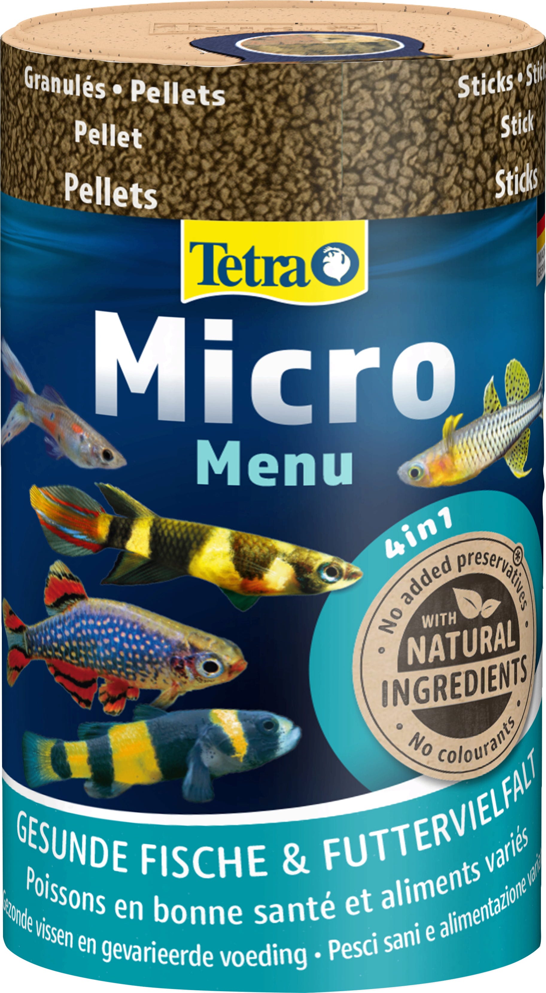 Mit dem Tetra Micro Menu hat Tetra 4 innovative Microfuttersorten in nur einer Dose vereint- perfekt für das Gesellschaftsaquarium mit kleinen Zierfischen!
