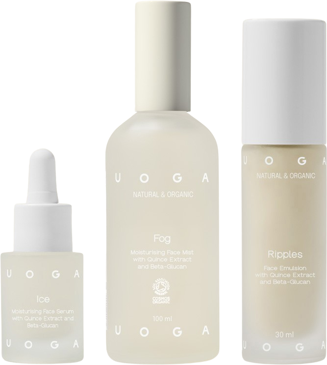 Das Set A sip of refreshment von UOGA UOGA enthält hochwertige Produkte die dein Gesicht intensiv mit Feuchtigkeit versorgen und kleine Trockenheitsfältchen aufpolstern.