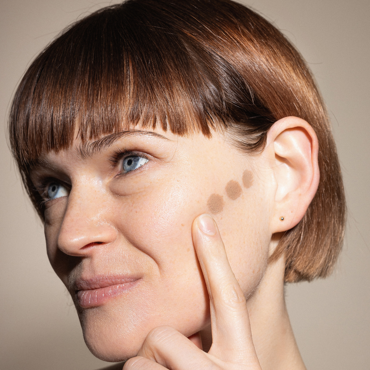 Cream Contour mit den Fingern bzw. einem Pinsel auf die Stellen im Gesicht aufragen, denen du etwas Tiefe verleihen möchtest - wie unter den Wangenknochen, auf der äußeren Gesichtskontur oder entlang der Kieferlinie.