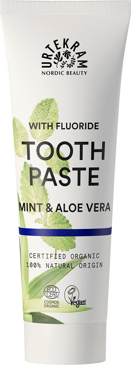 Der neue Cosmos Bio-Standard erlaubt nunmehr den Einsatz von Sodium Flourid. Deshalb gibt es jetzt die neue Zahnpasta mit Minze und Flourid für alle jene, die ihre Zähne mit Flourid schützen, aber nicht auf die natürliche Reinigung von URTEKRAM-Produkten verzichten wollen.