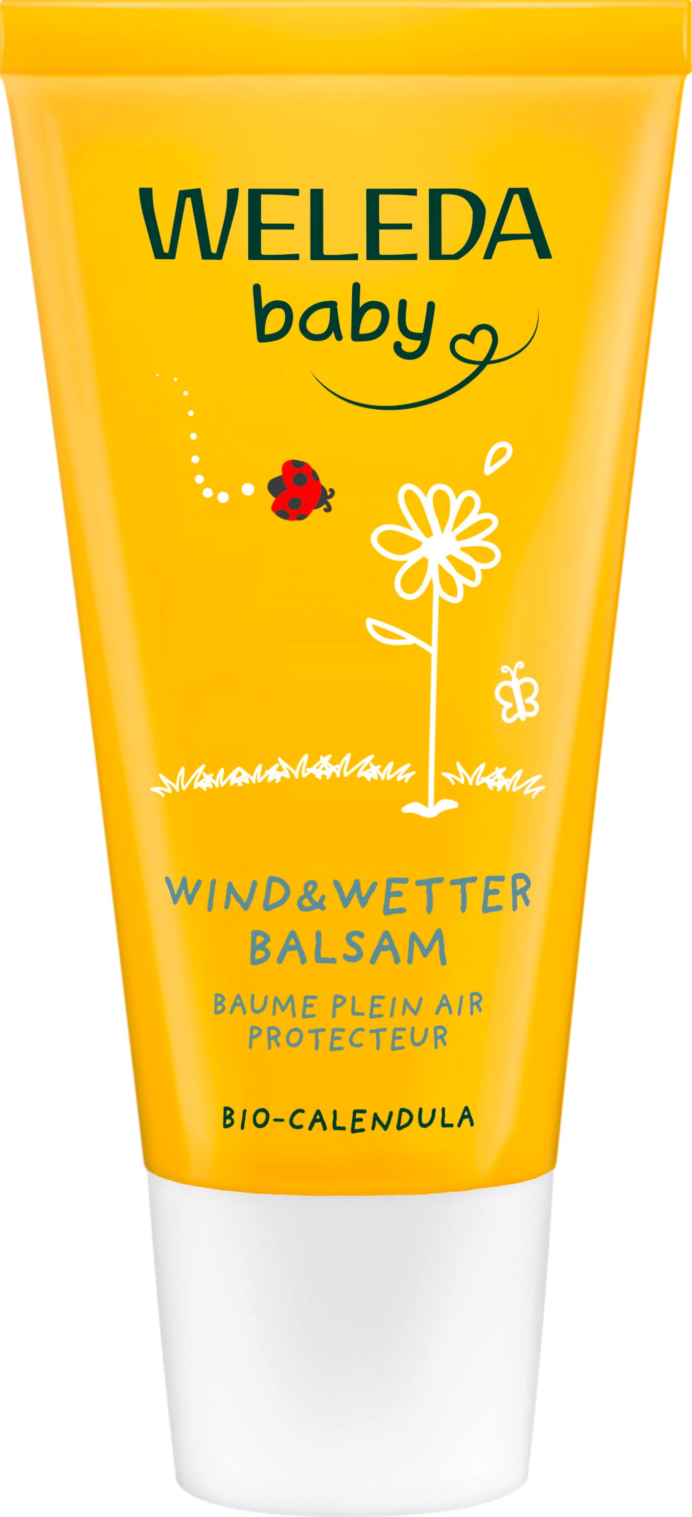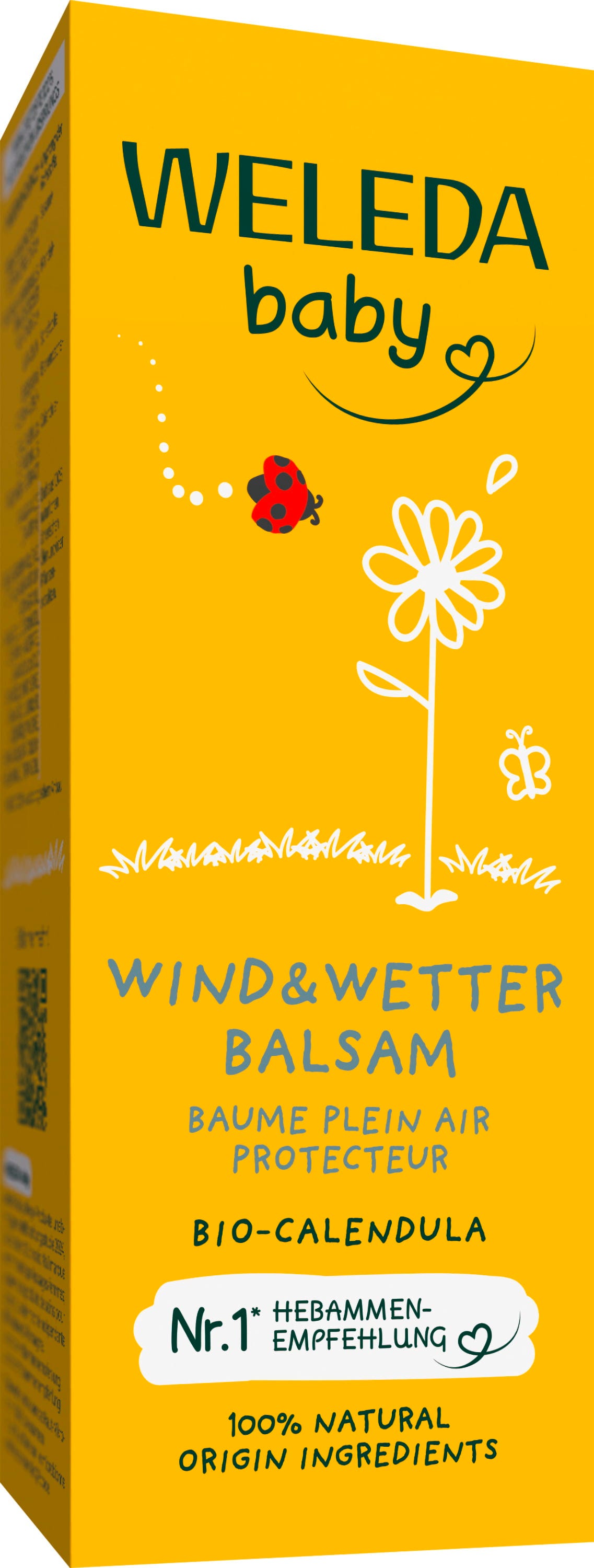 Empfindliche Kinder- und Babyhaut braucht besonderen Schutz, gerade, wenn es bei Regen, Wind oder Schnee an die frische Luft geht. Der intensiv schützende und äußerst reichhaltige Wind- und Wetterbalsam von Weleda sorgt für optimalen Schutz von sensibler Gesichtshaut und kleinen Händen. Hautverwandtes Lanolin (Wollwachs) und reines Bienenwachs bilden einen atmungsaktiven Schutzfilm, während kostbares Mandelöl für fühlbare Geschmeidigkeit sorgt - selbst bei trockener, strapazierter Haut. E Der Wind- und Wetterbalsam ist wasserfrei und äußerst ergiebig in der Anwendung. Auch zum Schutz von empfindlicher Erwachsenenhaut gut geeignet.