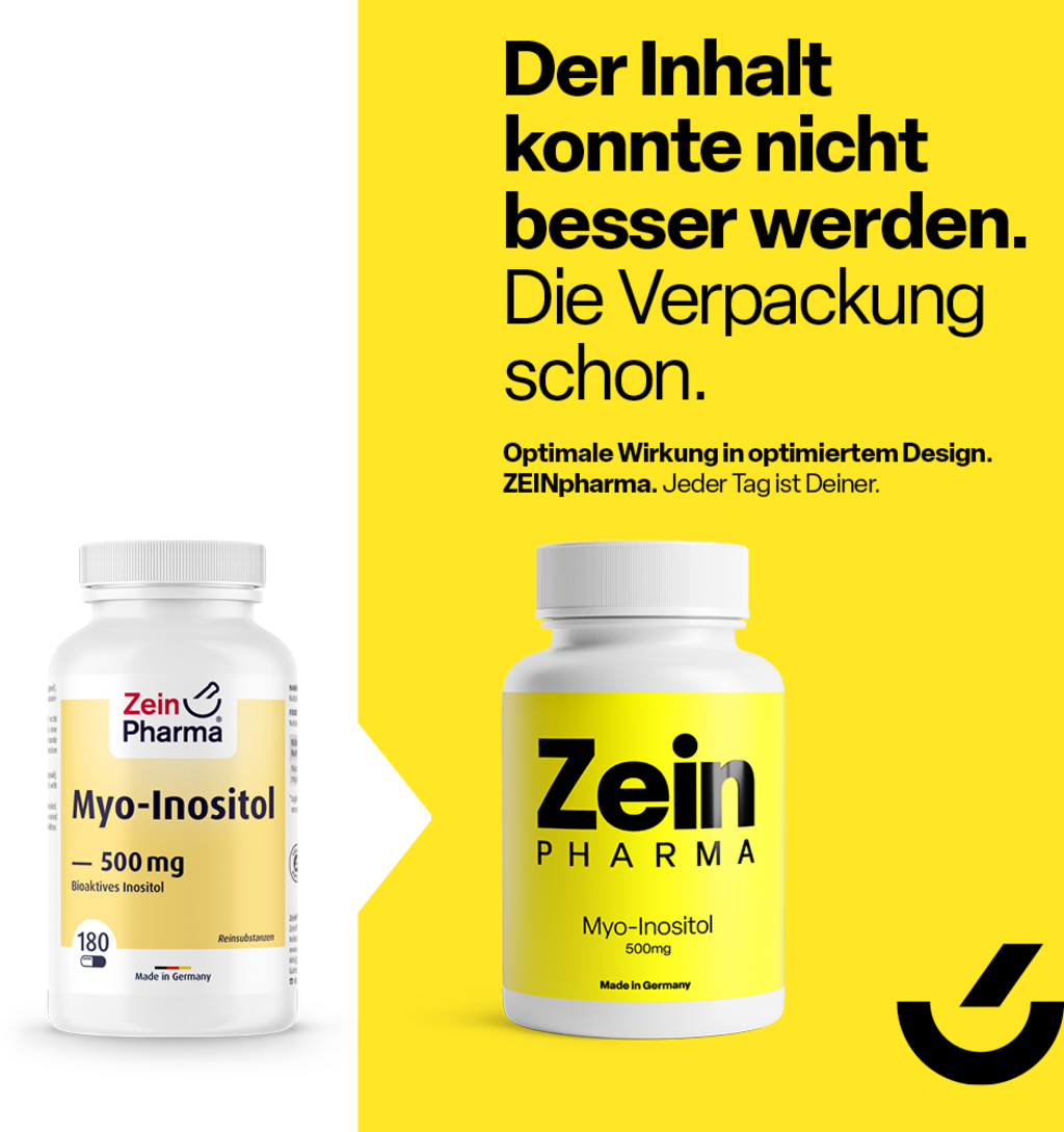 ZeinPharma Myo-Inositol ist eine ausgezeichnete Quelle für Inositol und gilt als Baustein für sekundäre Botenstoffe, die Signale von außen in die Zellen weiterleiten. Jede Kapsel liefert 500 mg reines Myo-Inositol. Die Kapseln sind vegan und frei von Magnesiumstearat.