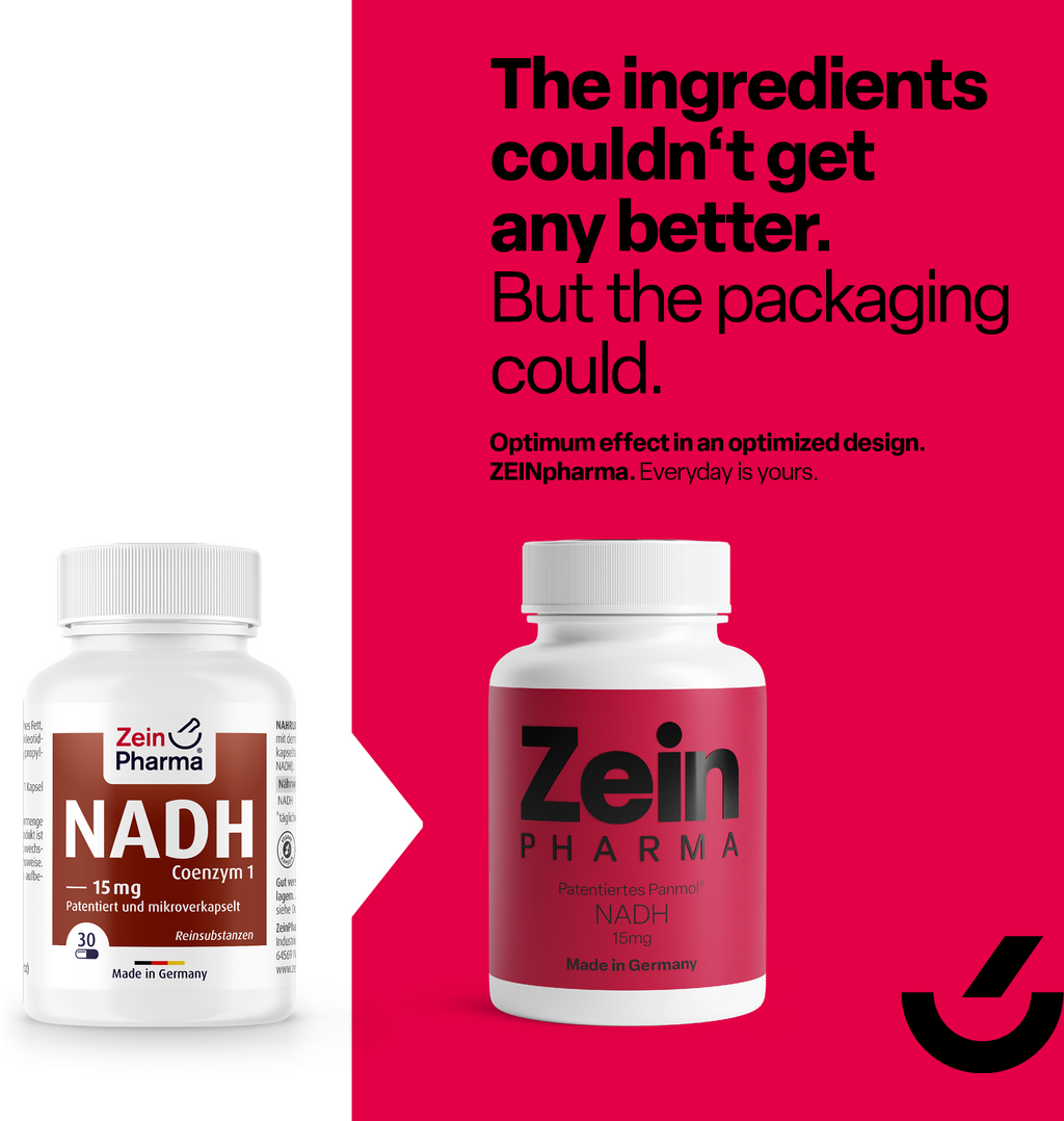 Mit den NADH Kapseln von ZeinPharma® erhältst du 15 mg patentiertes PANMOL®-NADH pro Kapsel. Natürlich stabilisiert, mikroverkapselt, ohne Konservierungsstoffe hergestellt und frei von Gluten, Laktose und Soja.